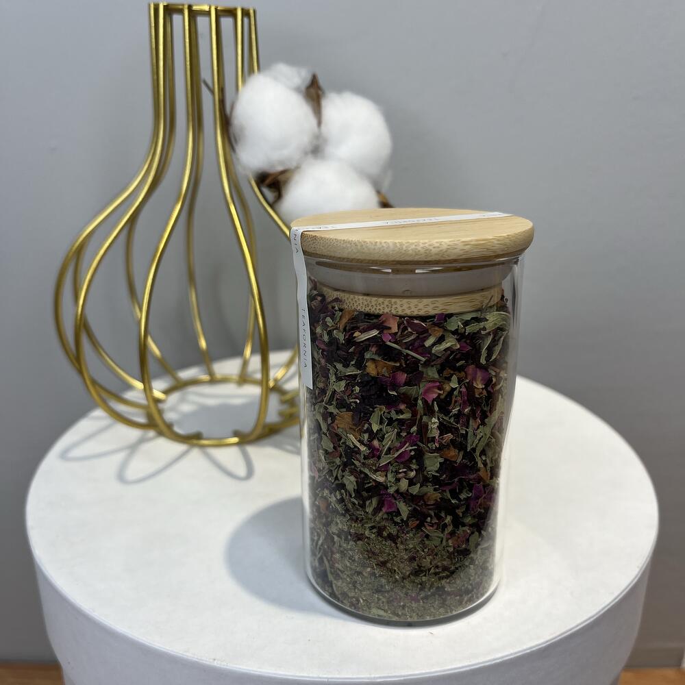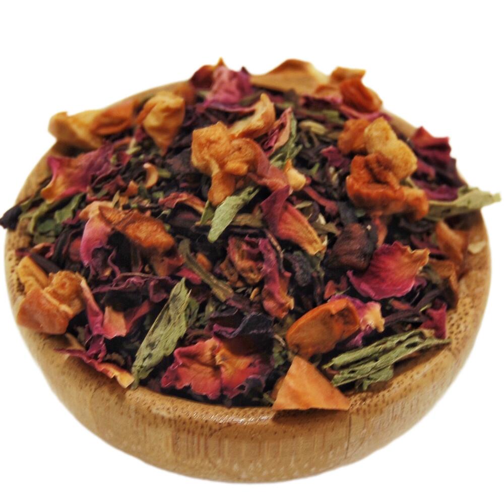 Травяной бленд передаст атмосферу цветущего сада: свежесть тени, краски цветов, сладость урожая и непринужденное настроение. Состав: гибискус (каркаде), мята, фенхель, стевия, кусочки груши, лепестки розы. Польза: высокое содержание витаминов и антиоксидантов, укрепляет сосуды, способен нормализовать эмоциональный фон. Вкус: впечатляющий микс сладости, свежести и ягодной кислинки. Без кофеина. Вес товара 45 +/- 5 г