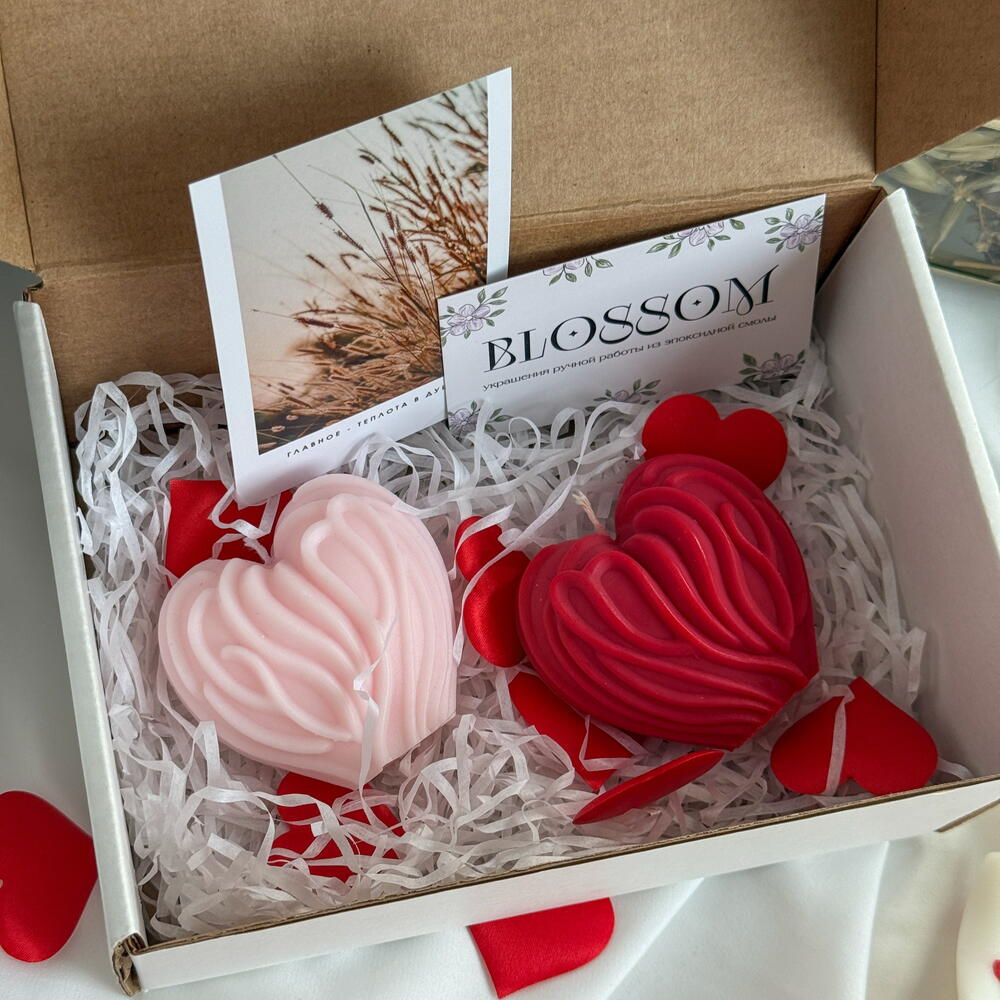 Набор из двух свечей с утончёнными ароматами — идеальное решение для создания атмосферы спокойствия и комфорта. Аромасвеча - красное сердце, представлена с отдушкой Пряное дерево. Верхние ноты (мускатный орех, гвоздика) — яркий, согревающий старт с лёгкой остротой. Создают благородное восточное настроение. Ноты сердца (зелёный лист, зелёные стебли) — свежая, прозрачная грань, напоминающая утренний лес после дождя. Привносят ощущение живой природы. Базовые ноты (лесная древесина, мускус) — тёплый, плотный шлейф. Древесина придаёт глубину и стойкость, мускус добавляет мягкую чувственность. Аромасвеча - розовое сердце — Бергамот вербена начинается с ярких и освежающих нот калабрийского Бергамота и цитрона в верхних нотах, создавая свежий и цитрусовый старт. В сердце аромата раскрывается интенсивная вербена, сопровождаемая цитронеллой и лимоном, добавляя цветочные и травяные акценты. Базовые ноты аромата состоят из амбры, которая придает композиции теплоту и глубину, завершая ароматическое путешествие. Бергамот вербена представляет собой Сочетание яркой свежести цитрусовых, травяных оттенков вербены и уютной базы амбры, создавая бодрящий и элегантный аромат. Доставка в подарочной упаковке. Подарок каждому клиенту!❤️