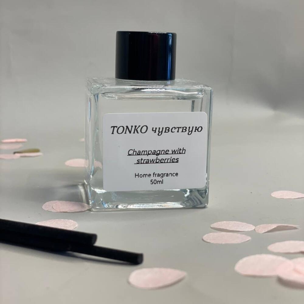 Диффузор для дома с ароматом Шампанское с клубникой Верхние ноты: клубника Средние ноты: игристое шампанское, виноград, красные ягоды, роза Базовые ноты: сахар В комплекте 4 фибровые палочки. Объем флакона 50мл. Ода любви и первому свиданию, напоминающая о наших головокружительных чувствах и самых счастливых моментах, проведенных вдвоем.