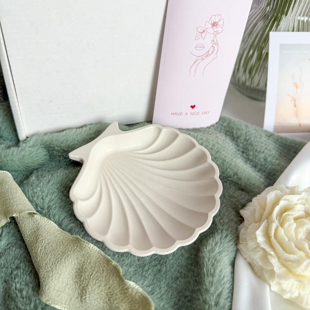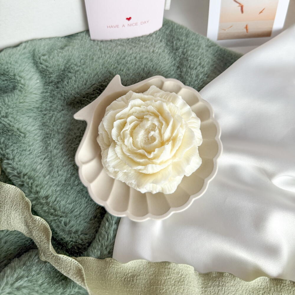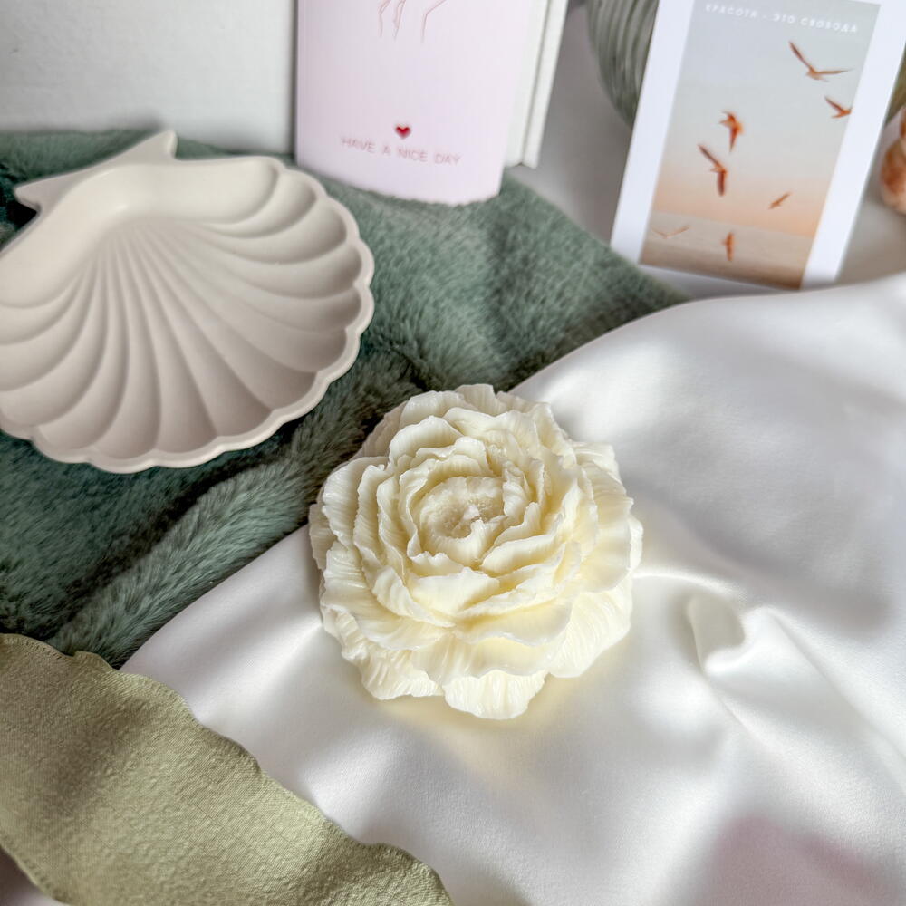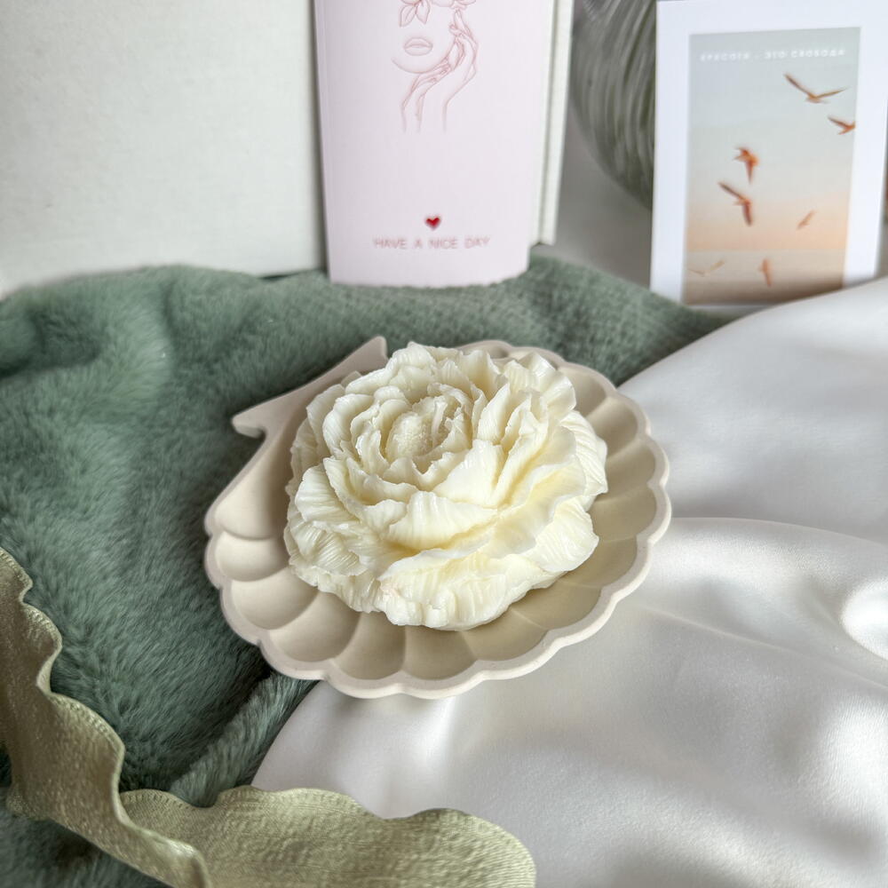 Ароматическая свеча пион и подставка ракушка в подарок для любимой девушке жене подруге