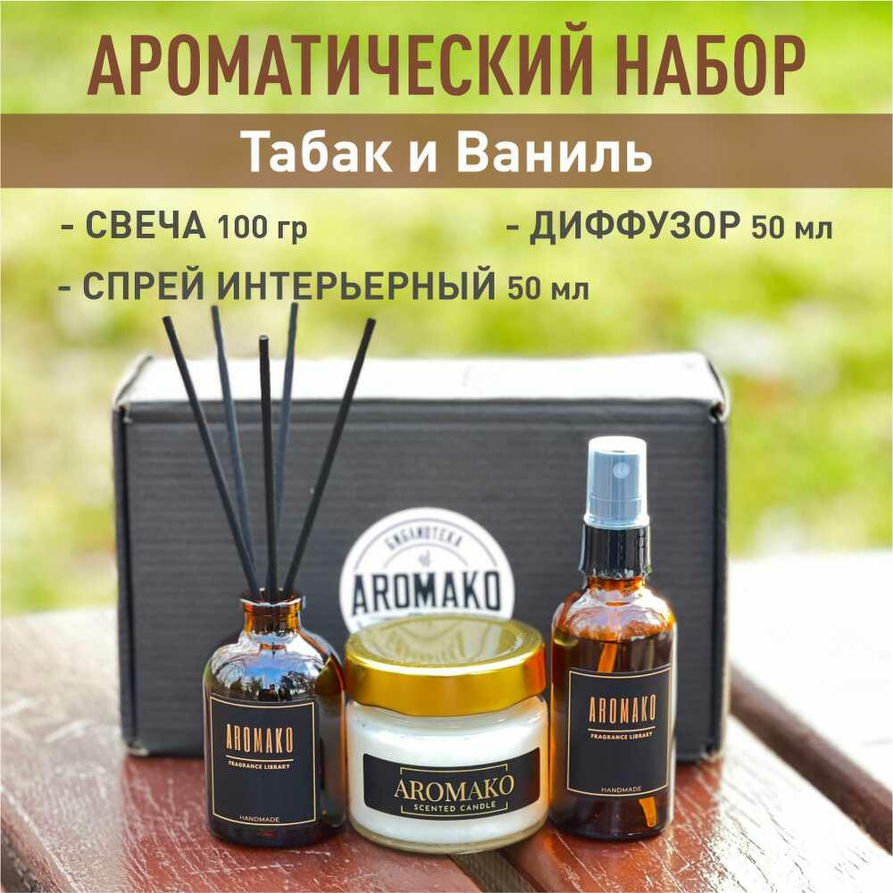 Подарочный набор Табак и Ваниль от AROMAKO - это стильный и функциональный набор, который станет отличным подарком на любой праздник. В набор входят свеча объемом 100 гр, диффузор с палочками 50 мл и интерьерный парфюм-спрей объемом 50 мл. Ароматы вдохновлённые Том Форд Tobacco Vanille. Аристократичный, соблазнительный и невероятно роскошный аромат. Начало парфюмерной пирамиды играет манящими аккордами теплых специй и волнующих табачных листьев. Спустя несколько минут к ним присоединяются вкрапления нежного какао, обворожительной ванили, загадочных бобов тонка и пьянящего табака. Шлейф насыщенного букета оставляет за собой изысканный след благородных древесных мотивов и дымных сухофруктов. Подарочный набор упакован в стильную черную коробку с наполнителем из древесной стружки, что делает его еще более привлекательным и запоминающимся. Выбирая подарочный набор Black Papper от AROMAKO, вы получаете не только стильный и функциональный подарок, но и возможность создать уникальную атмосферу в вашем доме с помощью ароматов от АРОМАКО.