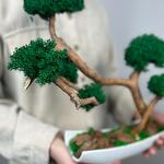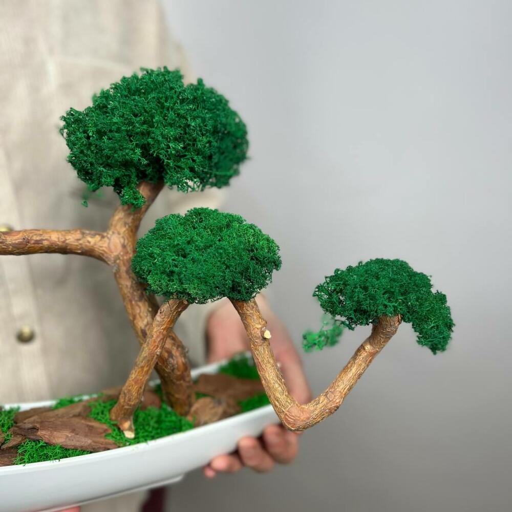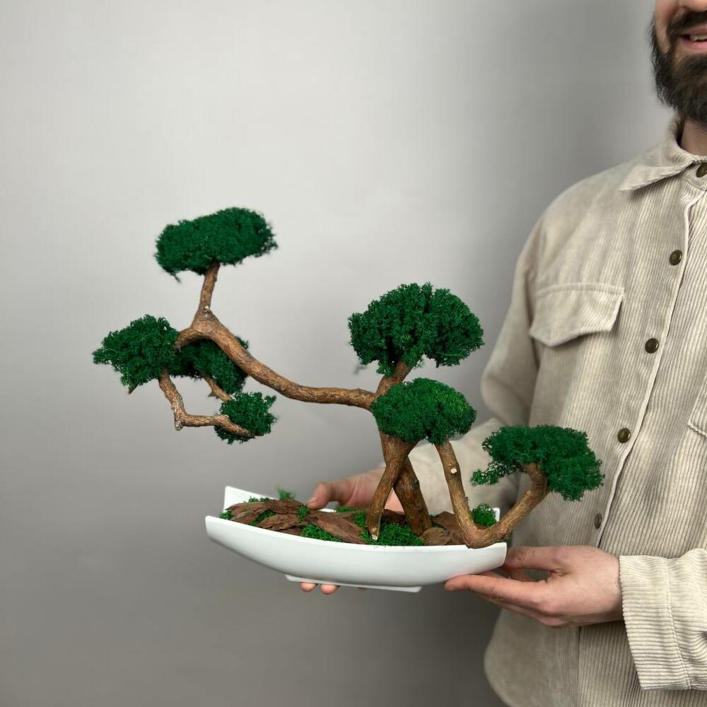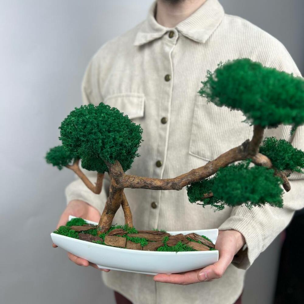 Бонсай со стабилизированным мхом в прямоугольном кашпо