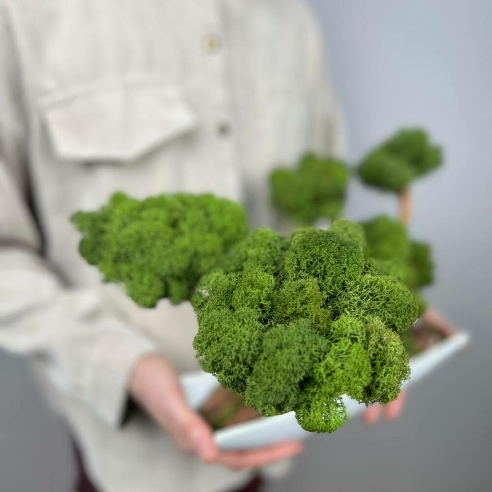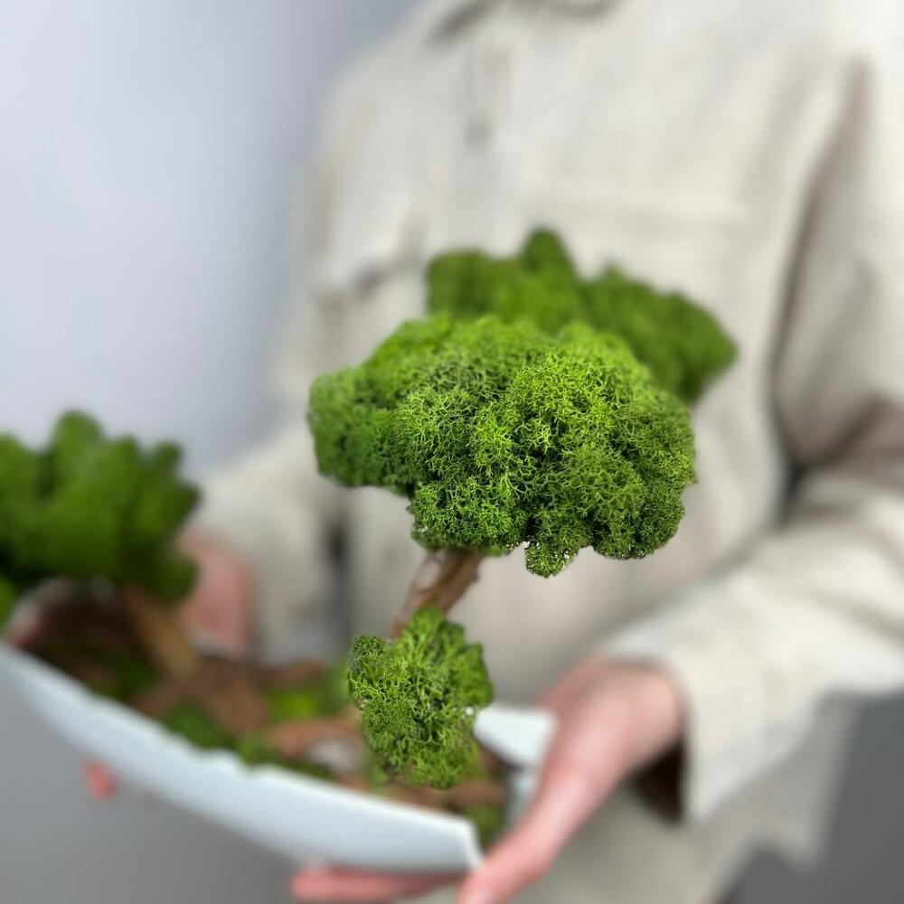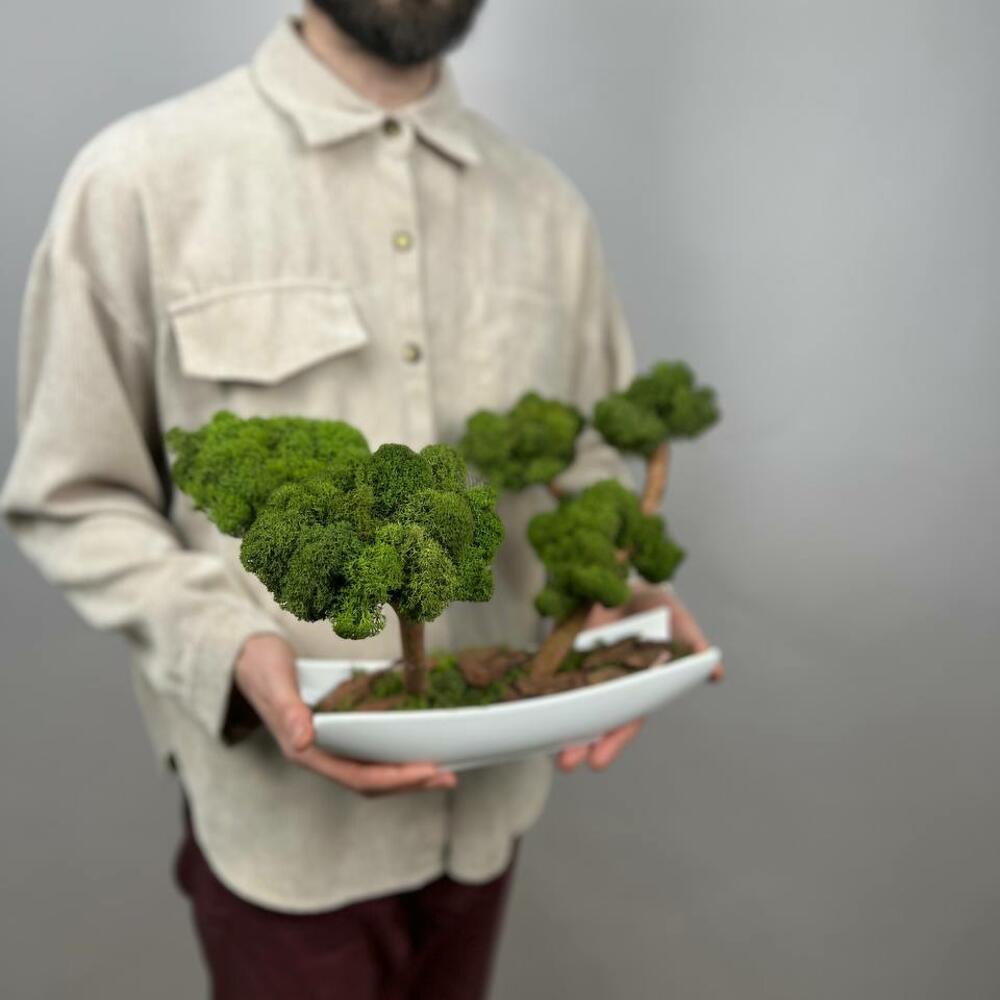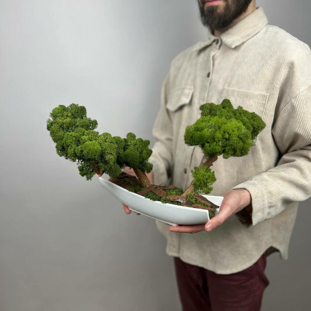 Бонсай со стабилизированным мхом вытянутом кашпо