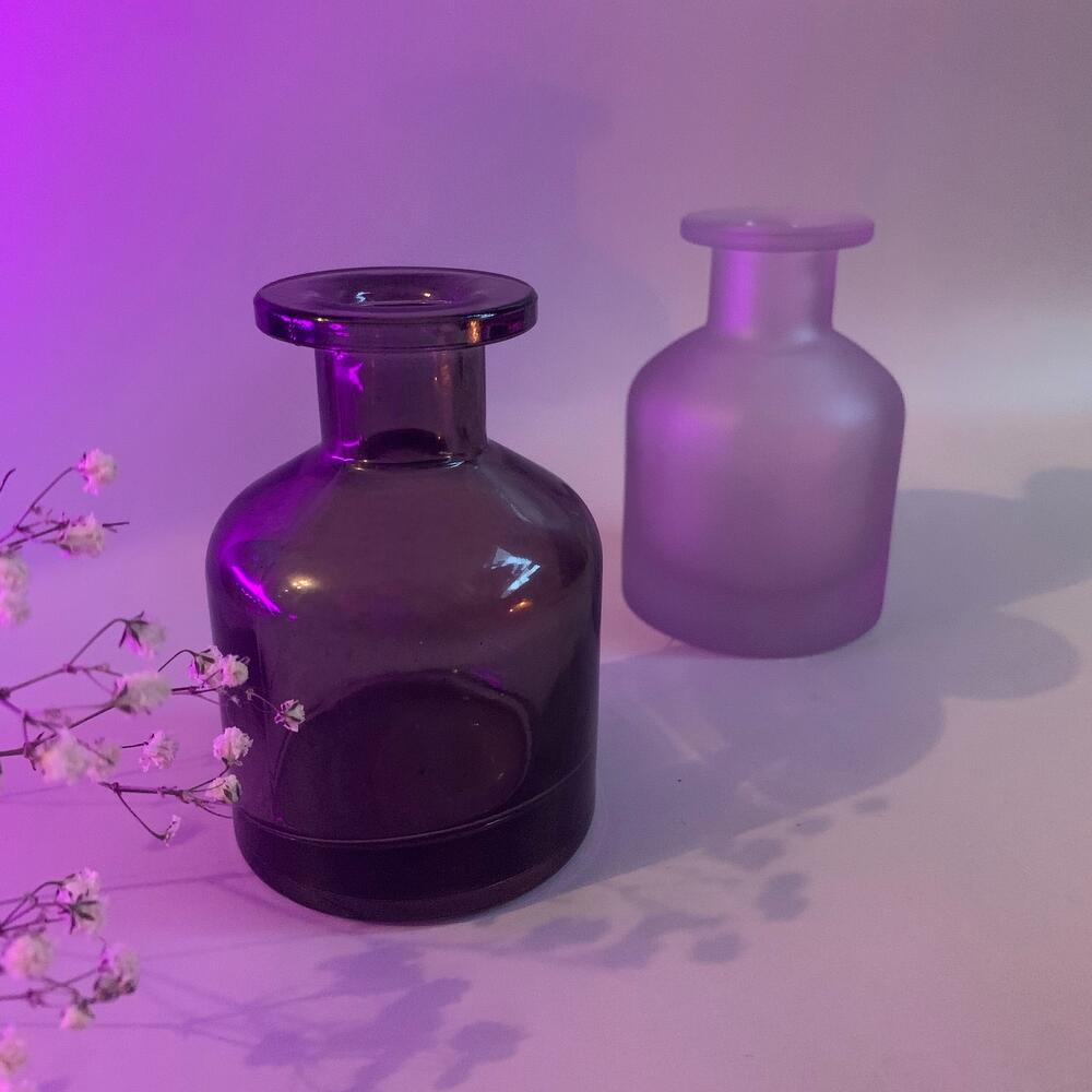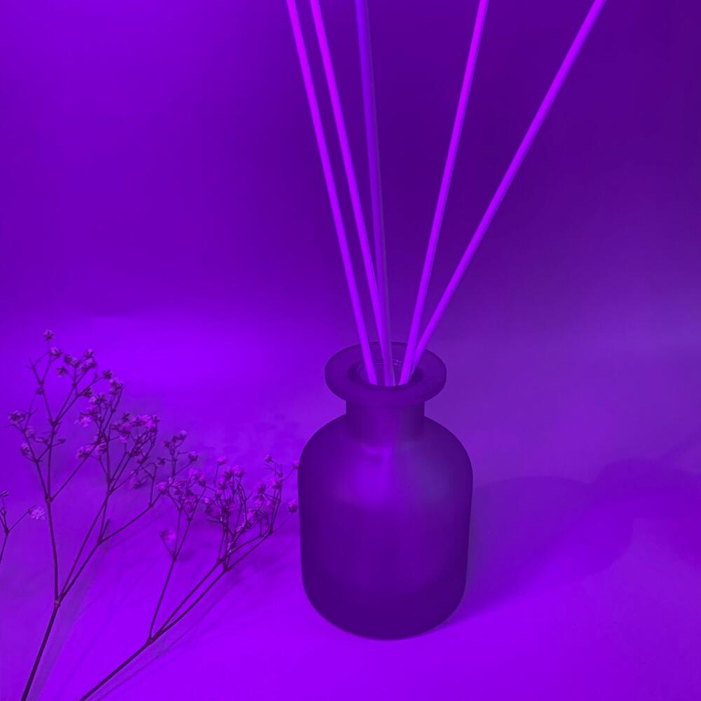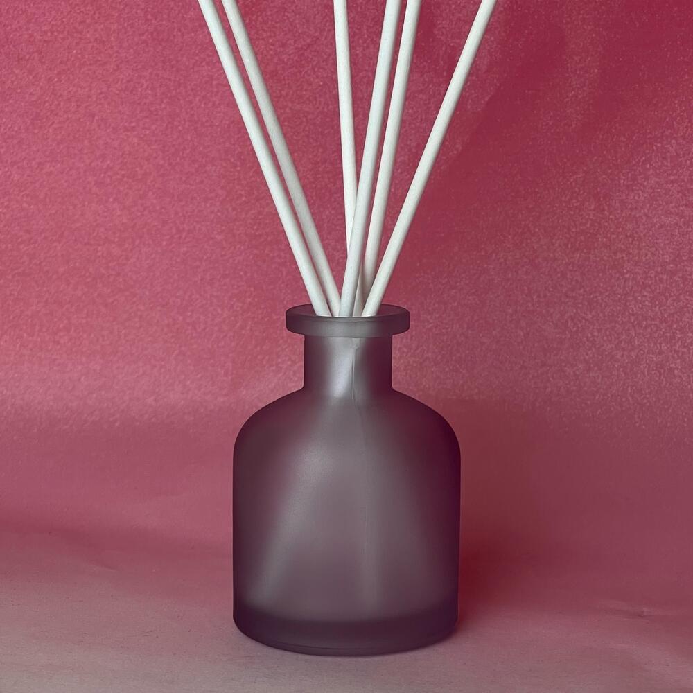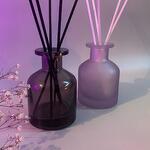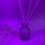 База для диффузора Ароматическая отдушка «пудра и шелк» Стеклянный матовый фиолетовый флакон с серебряной крышкой 6 белых фибровых палочек