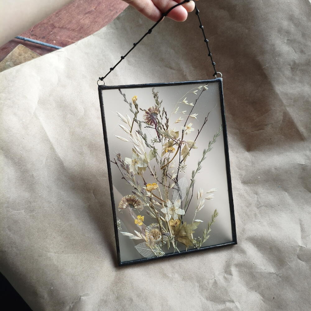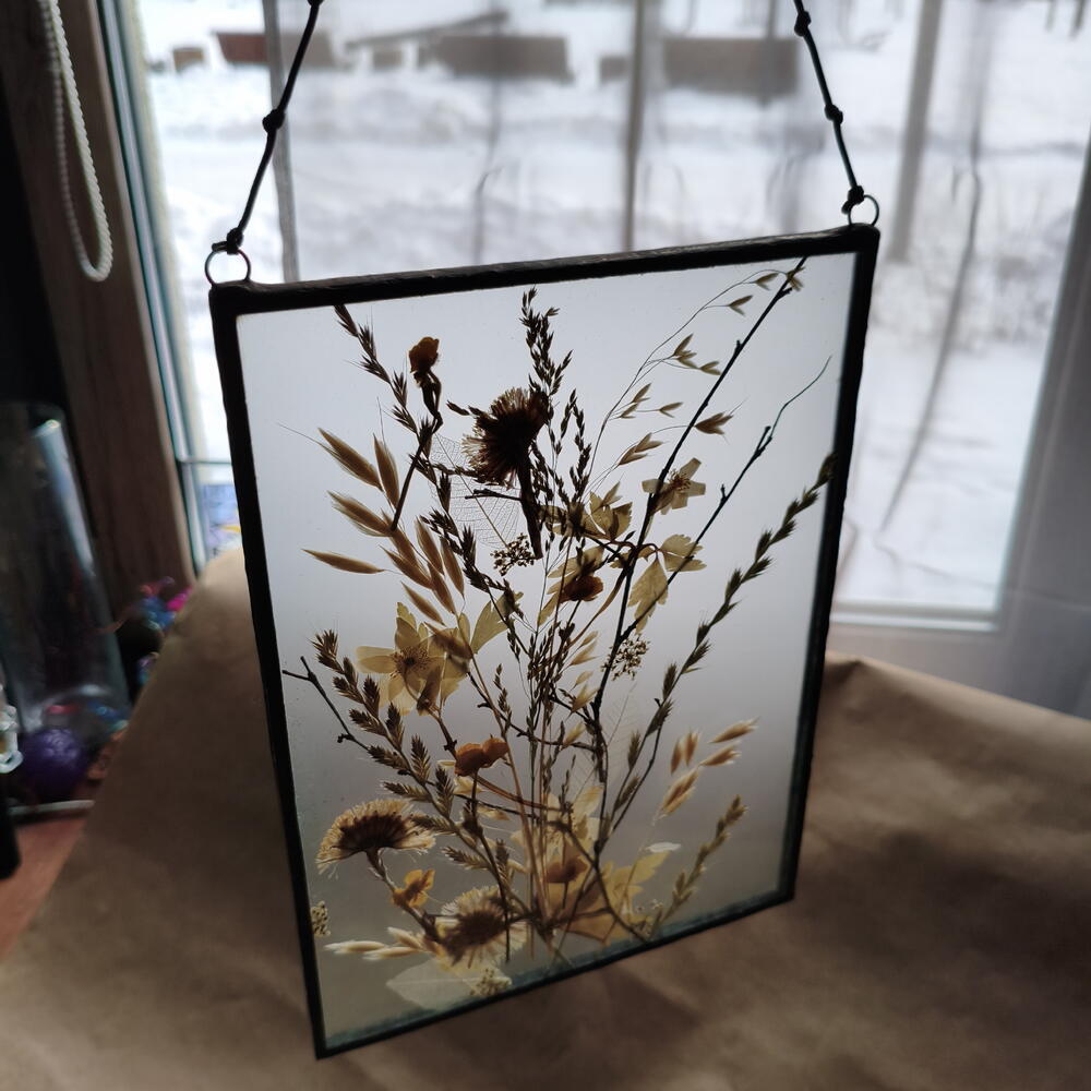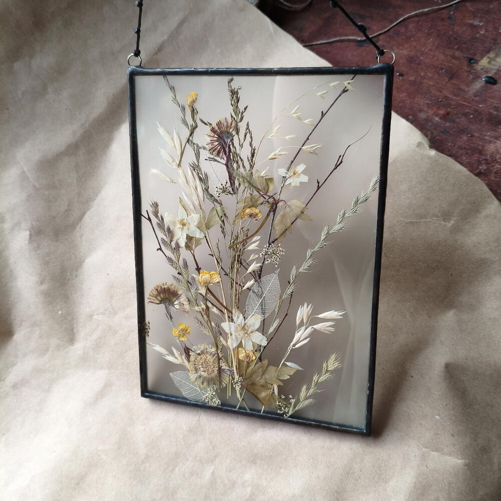 Гербарий в стекле ручной работы, техника Тиффани, рамка металлическая. Заднее стекло матовое. Растения с полей лен области 🌾 18×25 см Важно- не вешать на солнце и рядом с яркими лампами. 📦упакую надёжно