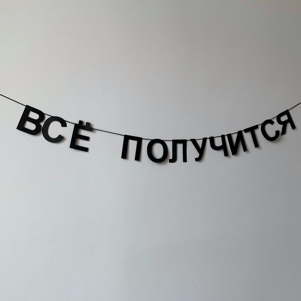 Гирлянда для вашего интерьера Создайте мотивирующую атмосферу с нашей волшебной бумажной гирляндой «Все получится»! Эта прекрасная декоративная гирлянда добавит неповторимое очарование вашему пространству. Наши бумажные гирлянды изготовлены с любовью и вниманием к деталям. Мы используем качественную дизайнерскую бумагу. Гирлянда упакована в конверт, внутри конверта: Надпись на шнурке (Высота букв 9см Длина шнурка 1.8м) 2 клеевые точки для крепления