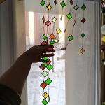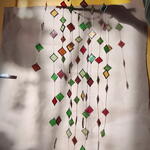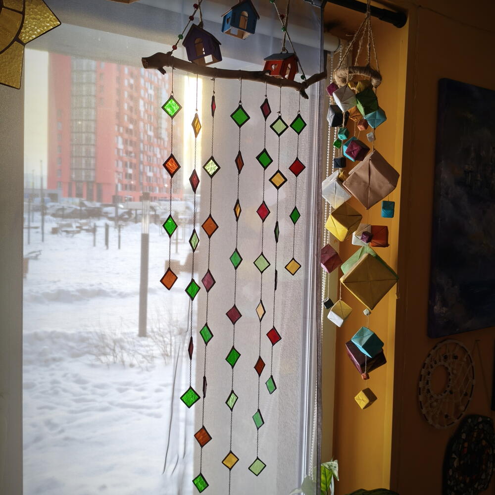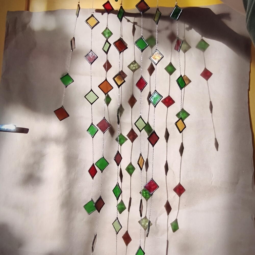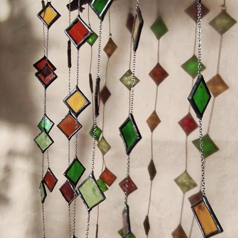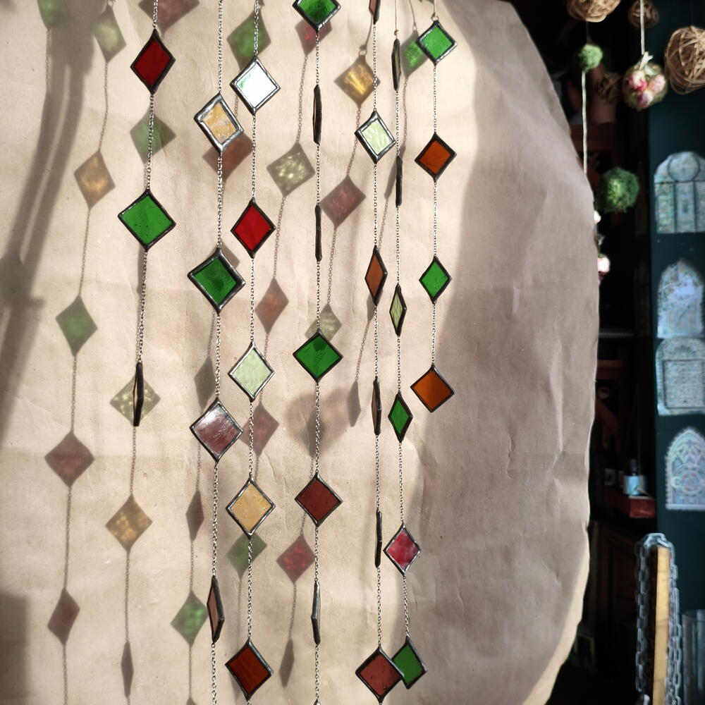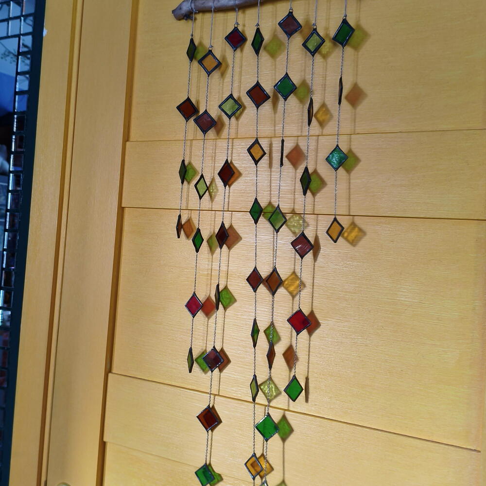 Подвеска на стену/окно из кусочков витражного стекла, ручная работа, в технике Тиффани. 📏35 см ветка, 79 см длина изделия, 45 шт стеклянных ромбиков. Добавит уюта и яркости в интерьер🧡💚💛 Подойдёт для подарка! Упакую в крафт. коробку