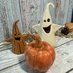 Призраки и тыква ручной работы на Хеллоуин! Встречайте Хеллоуин с уникальным декором! Очаровательные керамические статуэтки ручной работы. В набор входит: · Два привидения-подсвечника: создают таинственное мерцание. Используйте свечи-таблетки. · Тыква: завершает композицию. Идеально для создания уютной и мистической атмосферы дома! Подарок для себя или друзей, ценящих эксклюзив. Упаковка на фото + крафт пакет