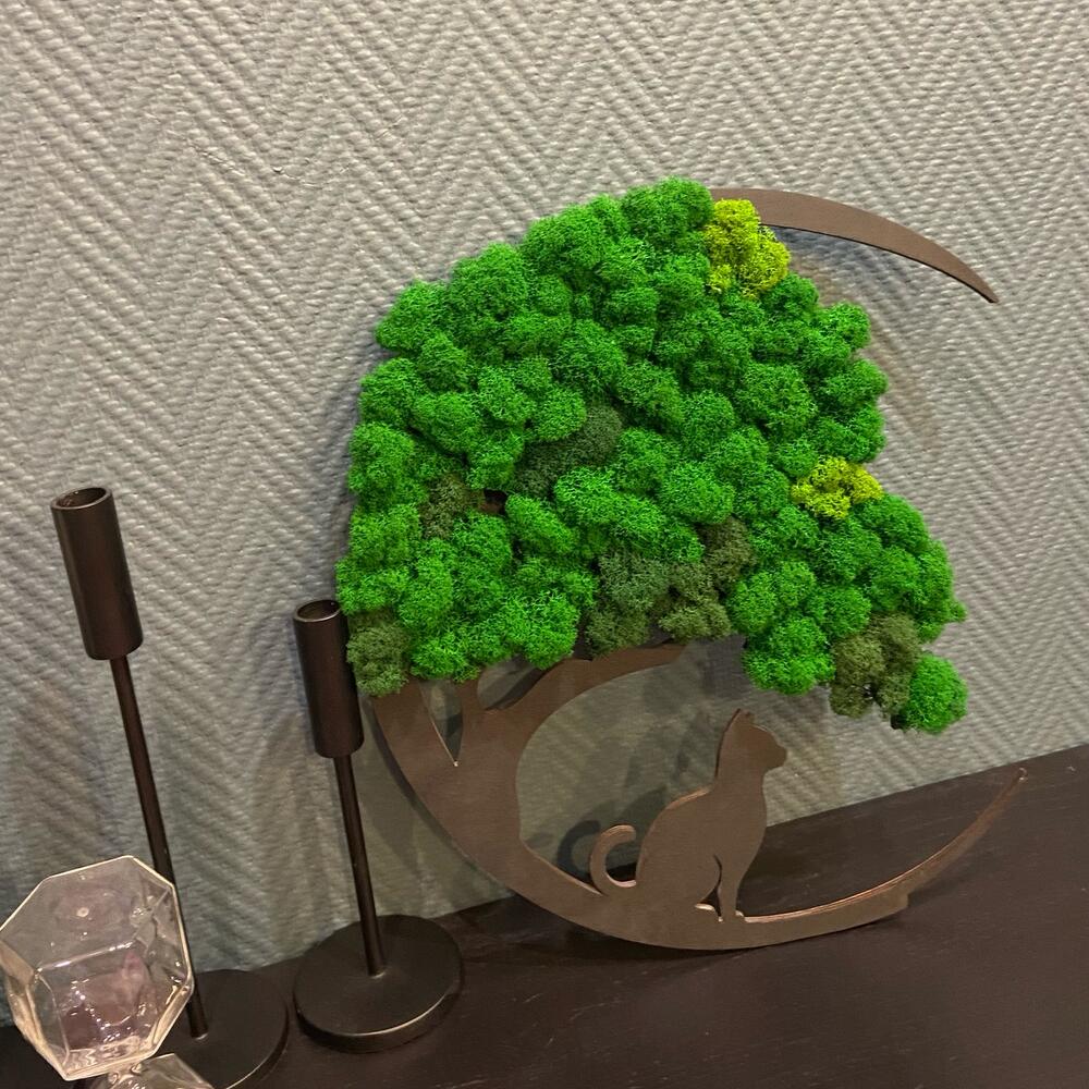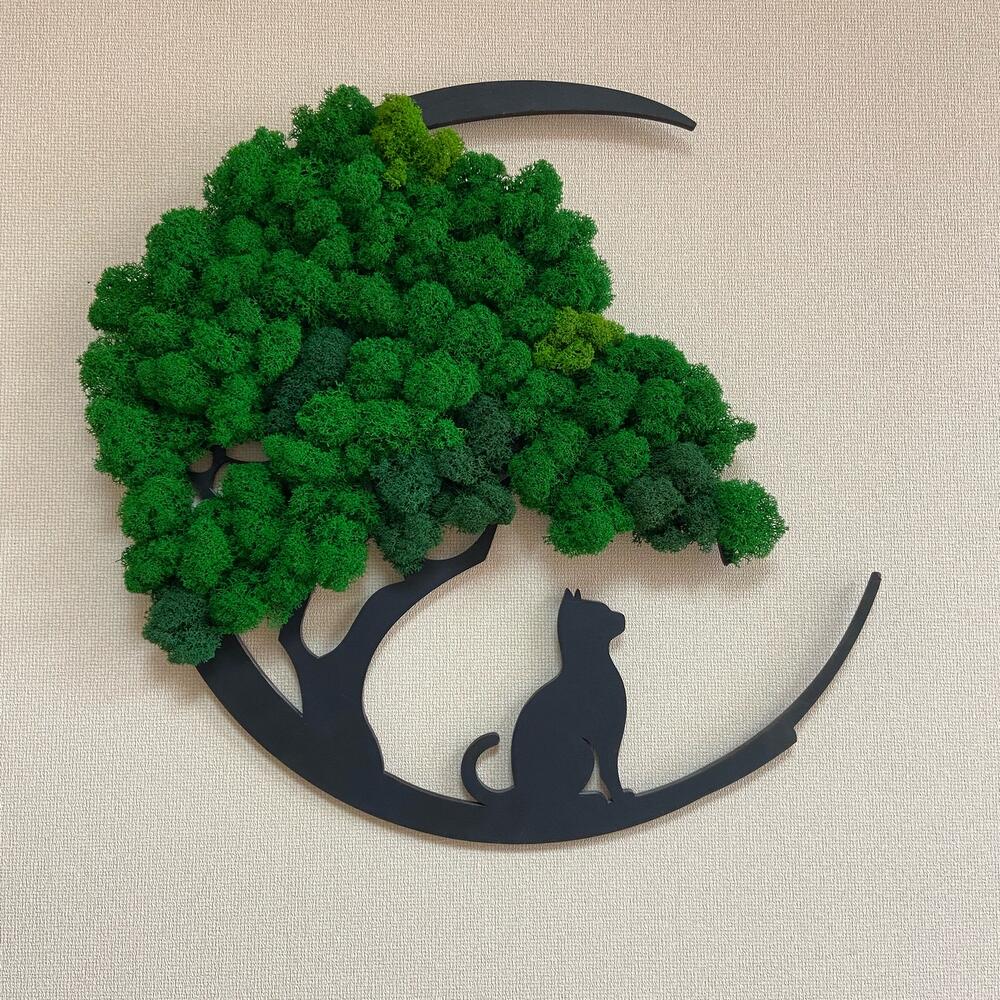 Настенное панно «Кошка» со стабилизированным мхом станет отличным дополнением в любой интерьер. Панно выполнено в черном цвете. Стабилизированный мох в нескольких цветах. Не требует ухода и полива, сохраняет свой первоначальный вид до 10 лет.