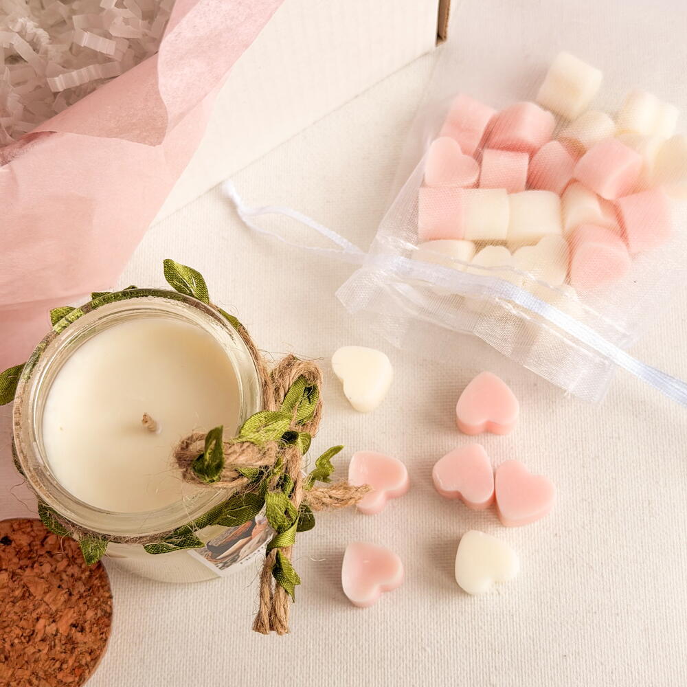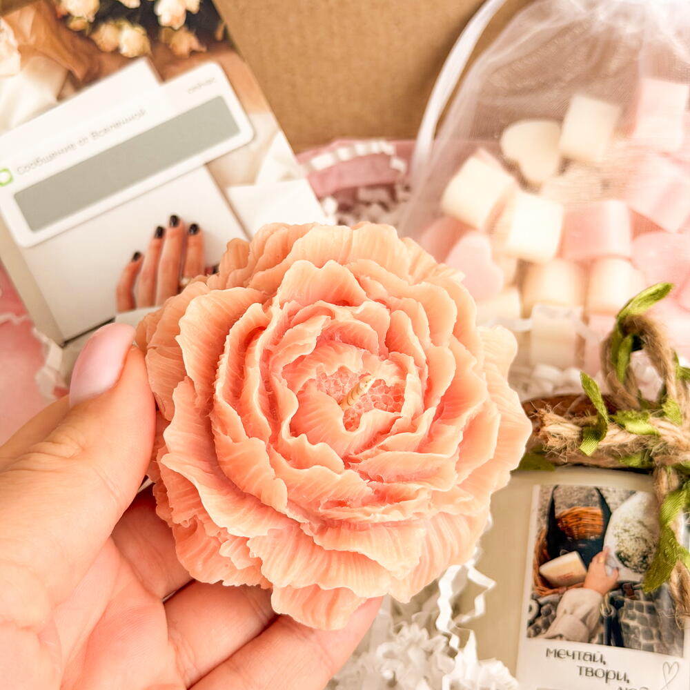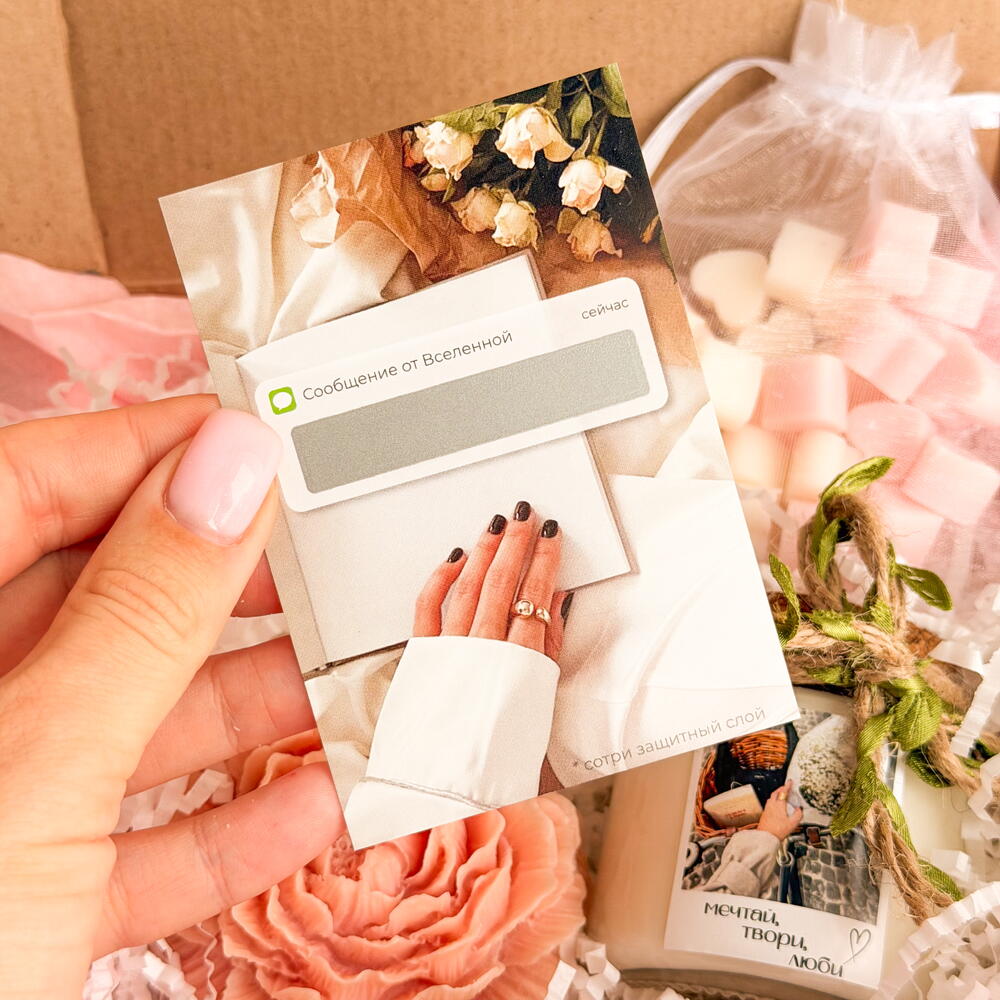 Подарочный набор со свечами прекрасно подойдет для подарка на день рождения подруге, коллеге, сестре🎁 ❤️Аромасвеча ручной работы «Мечтай, твори, люби» из натурального соевого воска с ароматом «Морская соль и орхидея» в баночке с пробковой крышкой. Чистый, слегка солоноватый аромат с ванильно-мускусным шлейфом и оттенком вирджинского кедра. Объем 100 мл/время горения 20 часов Пирамида аромата: TOP озон, морская соль, зелень HEART белая орхидея, жасмин BASE бурбонская ваниль, белый мускус 🩷 Ароматический воск в виде сердечек с ароматом «Вишня и миндаль». из натурального соевого воска подойдет как для аромалампы, так и для ароматизации комода или шкафа. Пирамида аромата: TOP миндаль, корица, гвоздика HEART вишня, табачный лист BASE кедр, сандал Свеча в виде пиона с легким ароматом меда добавит атмосферы релакса и уюта 💜 Высота свечи 3,5 см, диаметр 8 см 💌Скретч-открытка с теплыми словами - идеальное дополнение подарка. Она привнесет еще одну небольшую интригу и заряд мотивации или хорошего настроения после прочтения послания! Набор упакован в белую коробку с красной лентой и белый бумажный пакет🎁 Участвует в конкурсе 080326