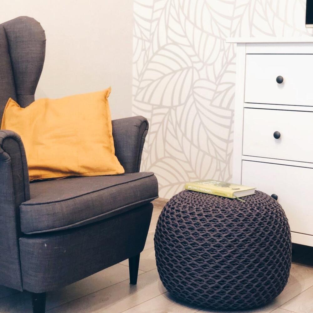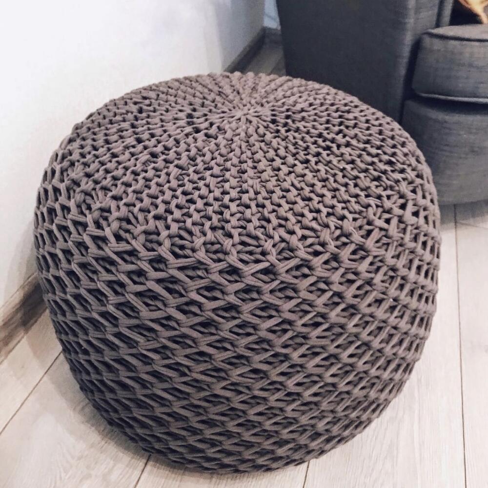 Пуф из трикотажной пряжи. Цвет «Дымчатый»( можно выбрать и другой).Вязание выполнено узором соты. Внутри мешок-основа, которая сшита из непромокаемого материала. Набит пуф шариками пенополистирола, самыми маленькими в диаметре, поэтому пуф не шуршит и практически не будет усадки. Такой пуф добавит уют в Ваш интерьер и украсит его.Замечательный вариант для подарка!