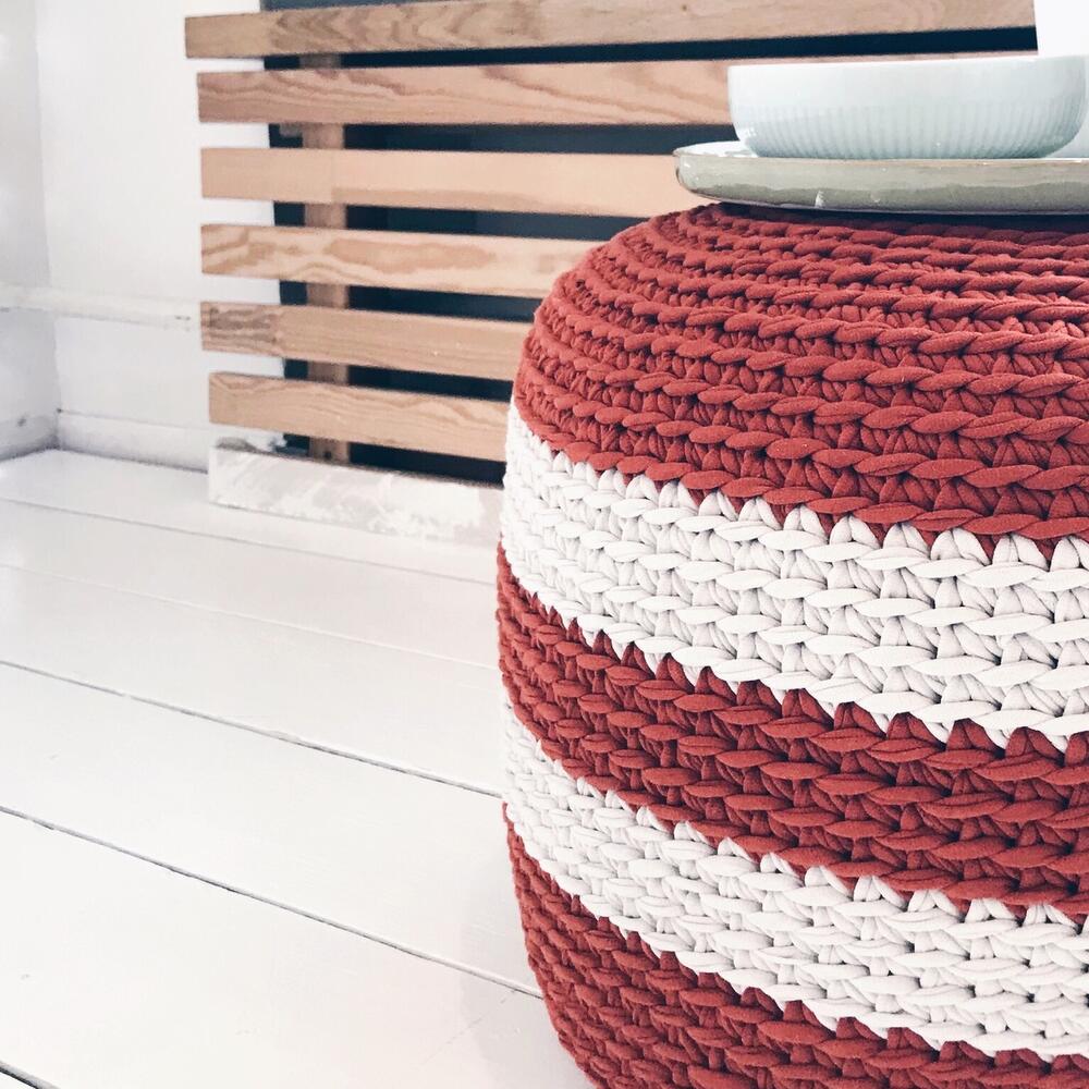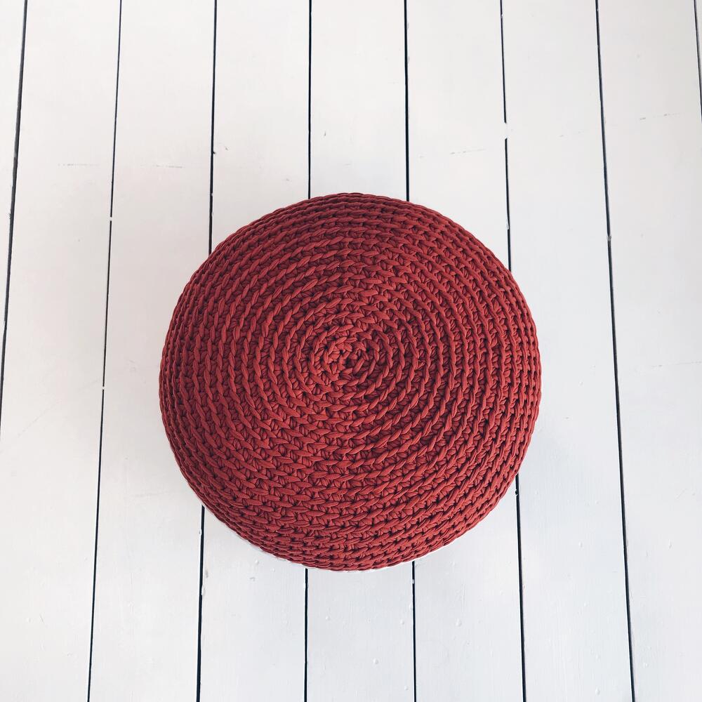 Пуф из трикотажной пряжи. Внутри мешок-основа, сшита из непромокаемого материала. Набит пуф шариками пенополистирола, самыми маленькими в диаметре, поэтому пуф не шуршит и практически не будет усадки. Отлично держит форму. Подойдет практически в любой интерьер. Отличный вариант для подарка! Можно выбрать другой цвет.