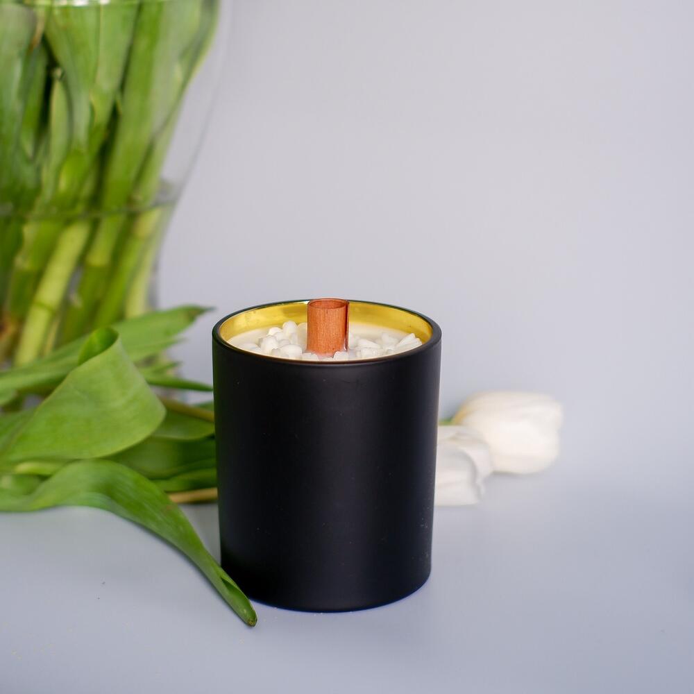 Большая свеча на 350 мл в шикарном матовом стеклянном стакане , внутрення часть золото, с деревянным круглым фителем с насыщенным ароматом Жасмина в жаркий летний день! При заказе по желанию можем добавить и открытку. Свеча идёт в подарочной коробке с атласной лентой.