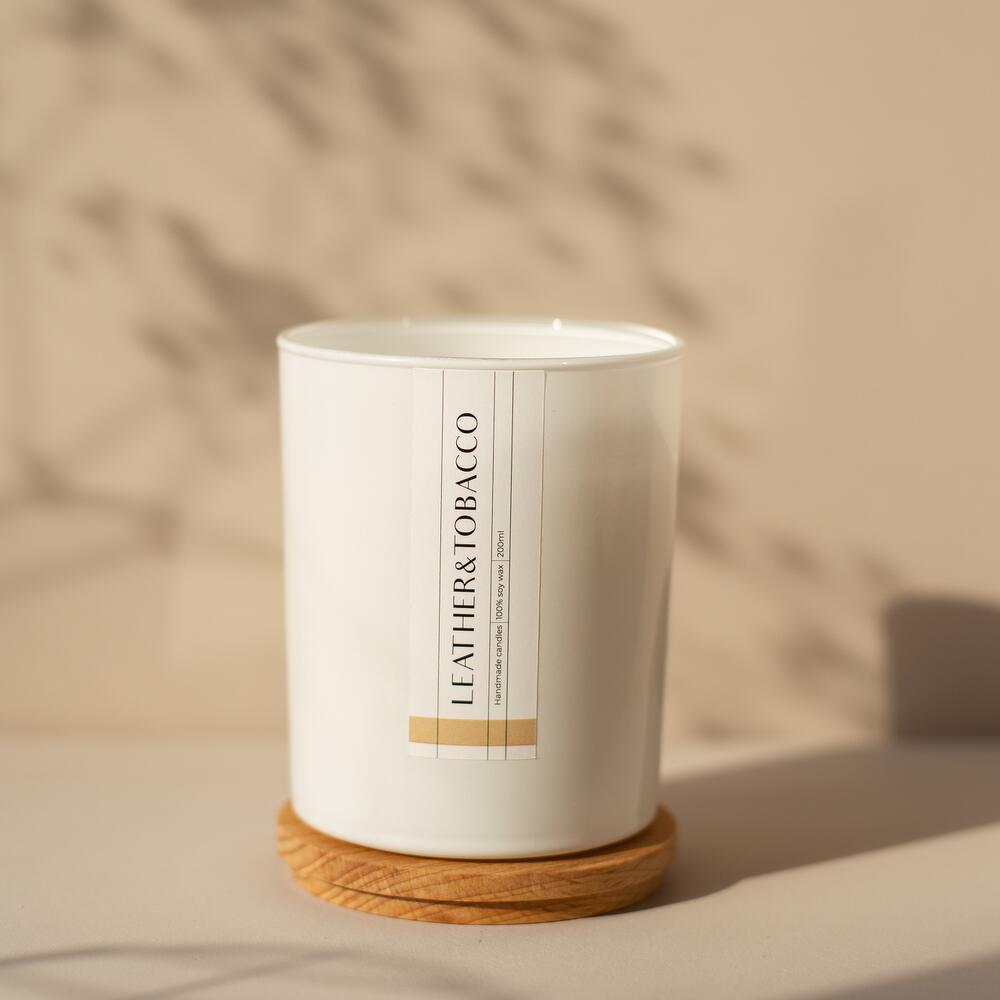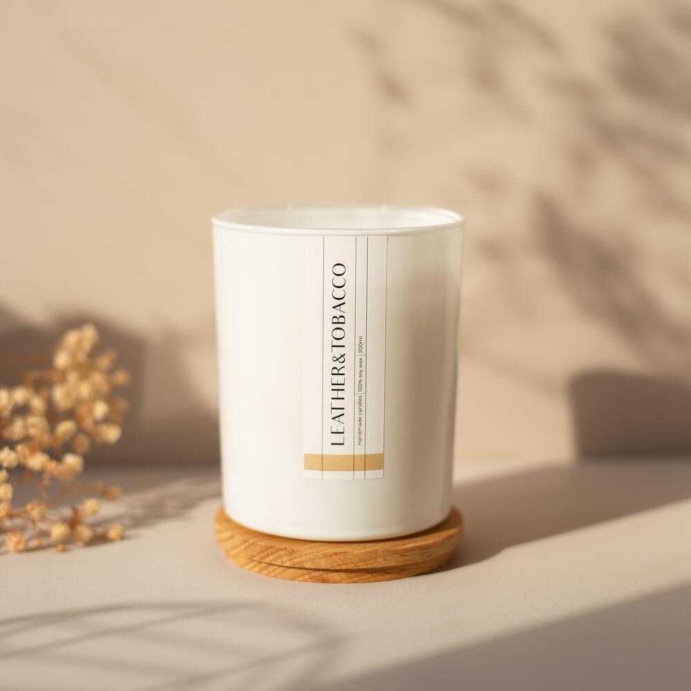 Свеча соевая с ароматом Кожа и Табак / Leather & Tobacco в белом глянцевом стакане объемом 250 мл с деревянным нежно потрескивающим фитилем. В комплекте идет деревянная крышка из бука с логотипом AESTHETE home. Сложное сочетание табачного листа, имбиря, древесной коры, мускуса и ванили. Идеален, чтобы наполнить благородным ароматом кабинет или библиотеку. Гармонию кожаного кресла и трубочного табака искушает сладкая ванильная нота. Горькая чувственность натуральной кожи, древесины и имбиря. Хочется вспомнить правило трех «С» — Cafe, Cognac, Cigare. Сварить густой крепкий кофе, плеснуть немного коньяка. Представить, как к потолку поднимаются кольца дыма от кубинской сигары. Пахнет корешками старинных книг, дубовыми стеллажами, мускатным орехом и густой тишиной. Вы вдыхаете скромное очарование буржуазии. Аромат кожи, древесной коры и табака помогает сосредоточиться, когда вы работаете над важной задачей. И расслабиться, когда решение пришло. Дарит уверенность в себе и чувство, что мир сегодня ложится на вашу ладонь. Дразнит ноздри табачным листом с послевкусием ванили. Состав эко-свечи: 100% органический соевый воск, без копоти и нагара, горит в два раза дольше, чем парафин и безопасен для здоровья, премиальные ароматические масла, деревянный фитиль. ИНСТРУКЦИЯ: Размещайте свечу на ровной поверхности вдали от огнеопасных предметов, в недосягаемости от детей и домашних животных. Тушите свечу крышкой, а после выпускайте дымок во избежание впитывания в воск. Избегайте сквозняка. При первом использовании подождите около получаса, чтобы поверхность воска полностью расплавилась и помещение окутал аромат. Затем, когда вы будете зажигать свечу, аромат быстро восстановится. В дальнейшем советуем снимать подрезать фитиль перед зажиганием, чтобы высота фитиля была не больше 1 см. Рекомендуем не сжигать свечу до самого дна. Время горения: более 40 часов. Объем воска: 250 мл.