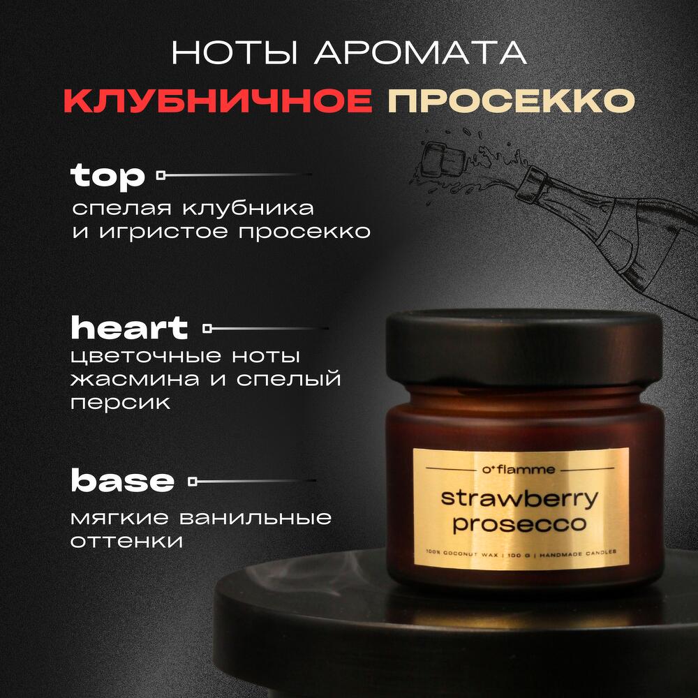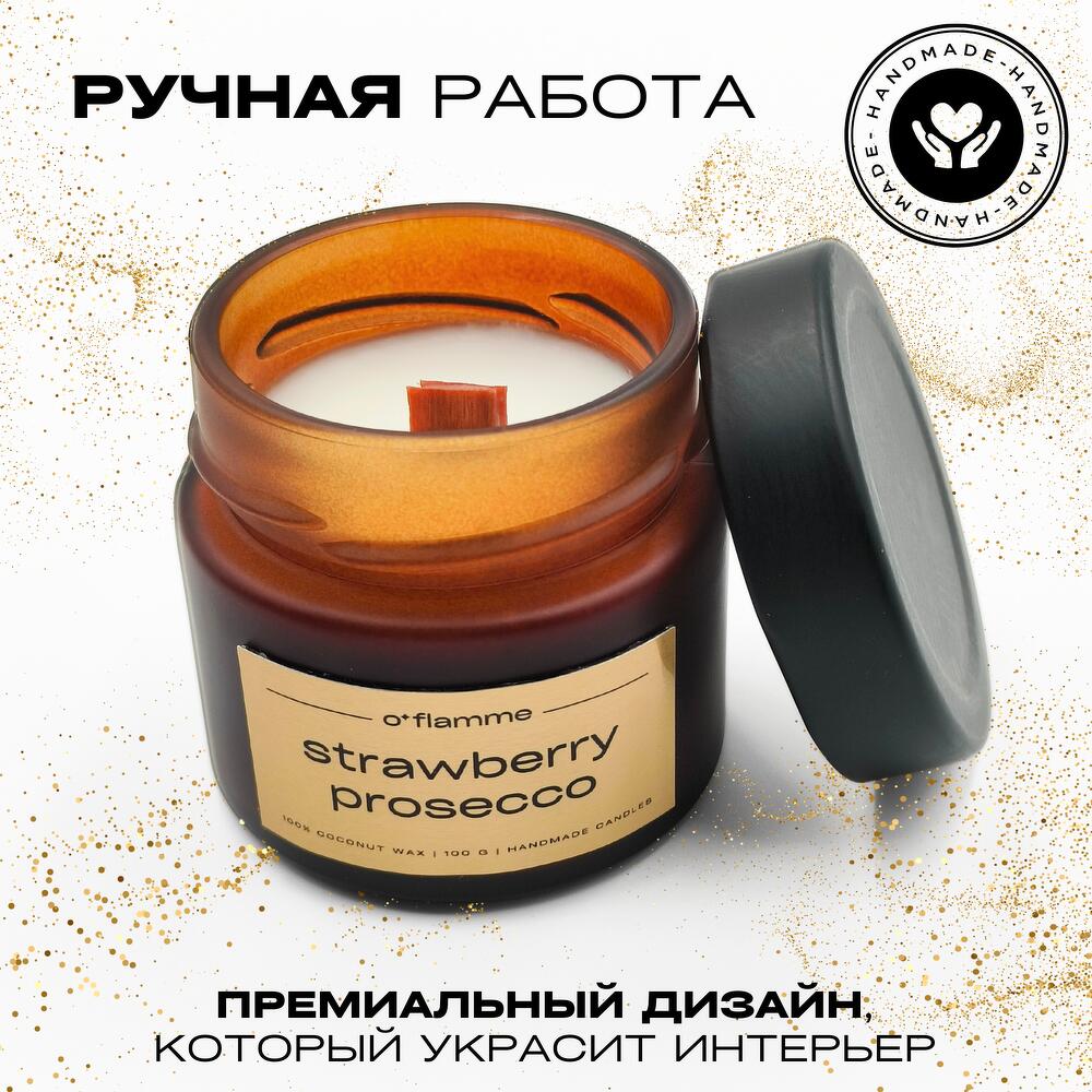 Свеча ароматическая "Клубничное шампанское" интерьерная с деревянным фитилем из кокосового воска, декор для дома
