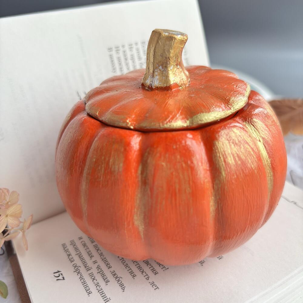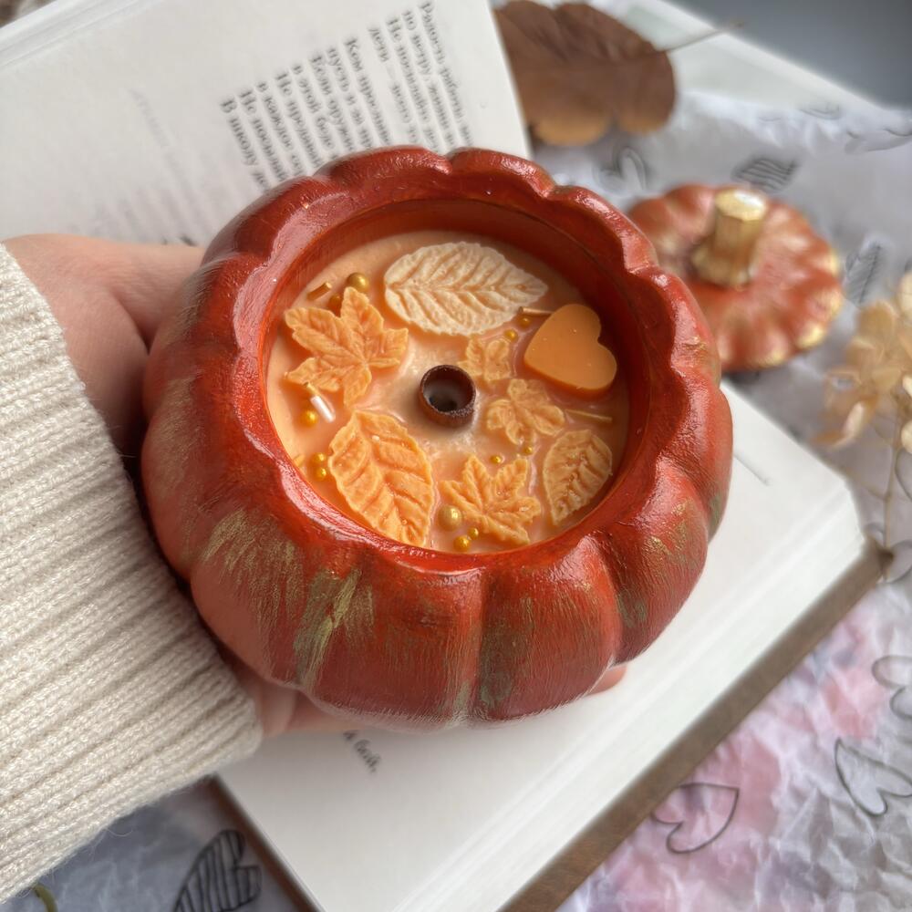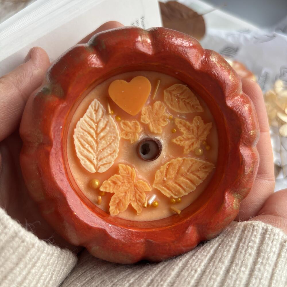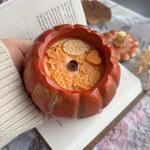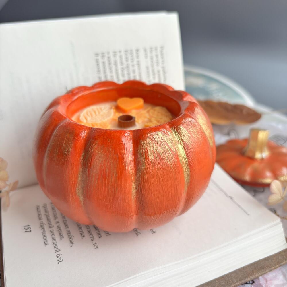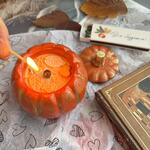 Свеча ароматическая в гипсовом подсвечнике - шкатулке Оранжевая тыква нежный аромат Кашемировой сливы для уюта в интерьере