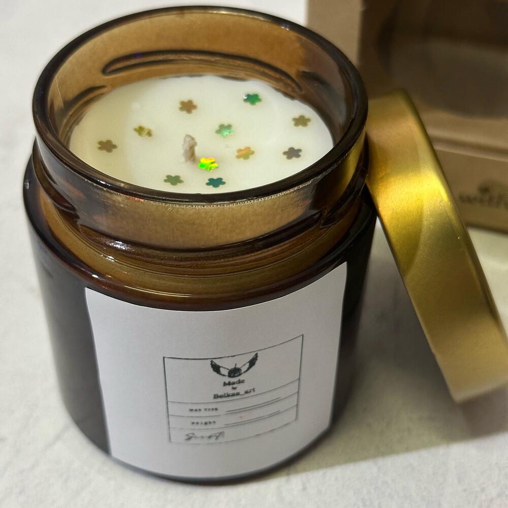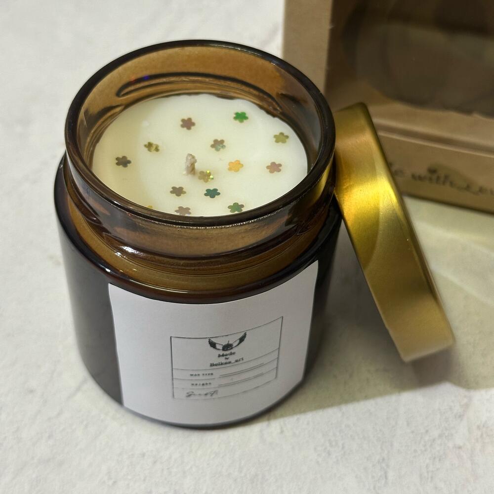 Свеча большая 200ml В подарочной коробке + открытка Аромат мангустин/личи