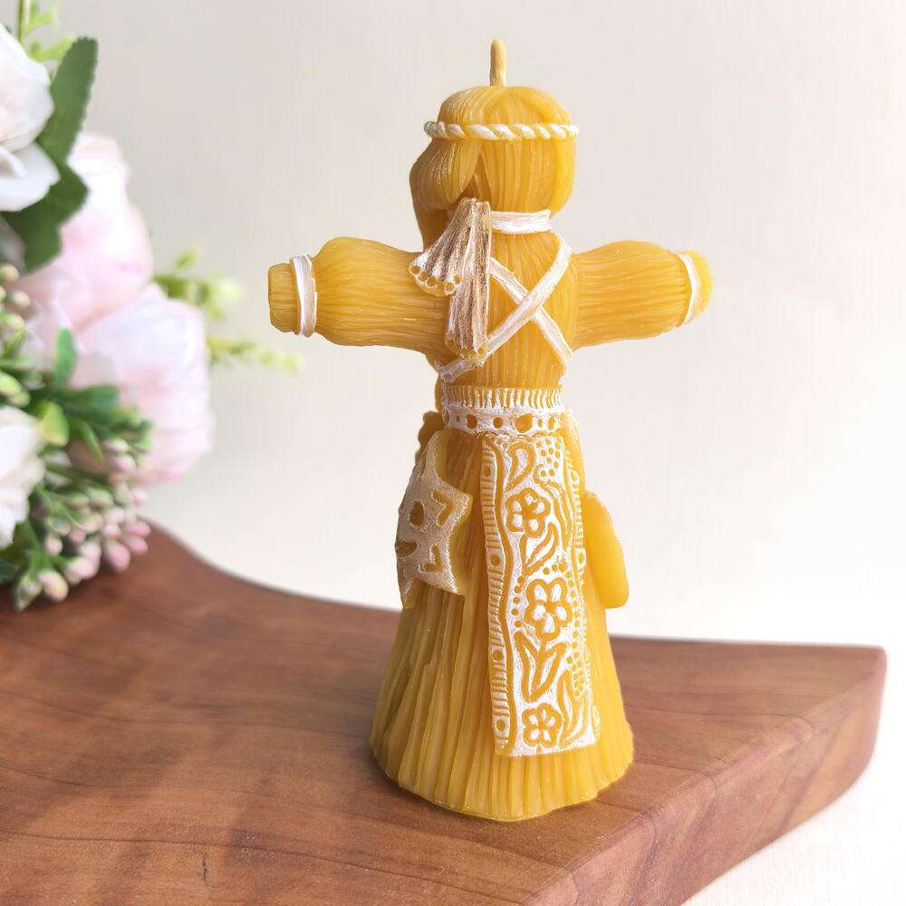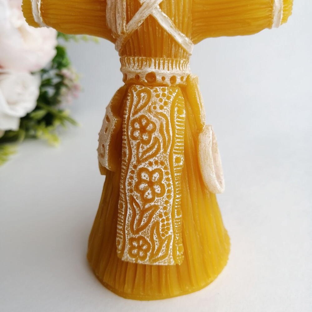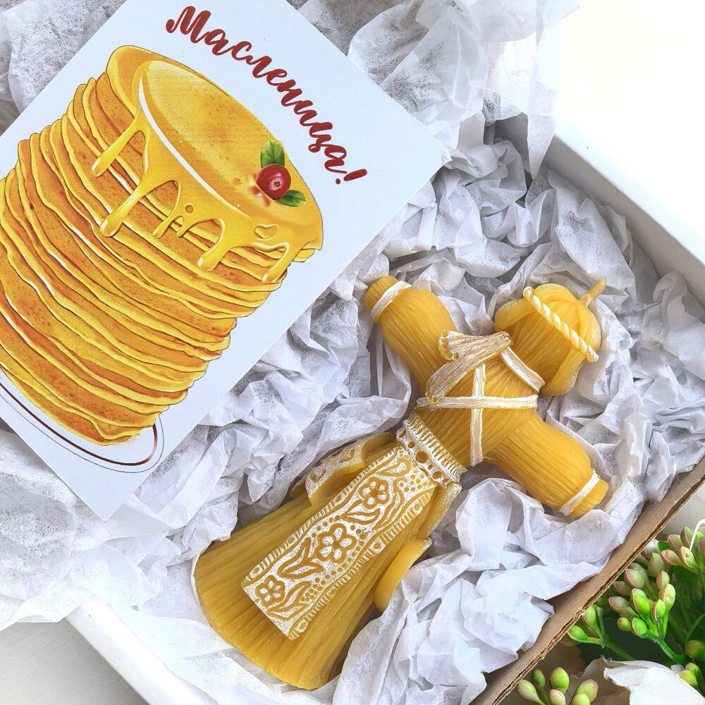 Собрались в гости на блины? Захватите с собой подарок - чучело масленицы. Свеча в виде куклы масленицы из натурального пчелиного воска бережно упакована с любовью и вниманием к деталям. Такой подарок приятно дарить и приятно получать. Она непременно станет украшением праздничного стола и приятно удивит хозяев. А Вы знали, что куклу Масленицу вовсе не обязательно сжигать только на сам праздник встречи весны? 🌞 Считалось, что пока кукла Масленицы стояла на почетном месте в квартире, она обладала огромной силой отгонять зло и беды. Кукла масленица готова принести в ваш дом добро и защитить вас и ваших близких от любых напастей. По верованиям славян кукла-оберег масленица олицетворяет благополучие и достаток семьи, а также огромную защитную энергию от тёмных сил, бед и напастей. Готовая куколка становилась сильным семейным оберегом на целый год. Её помещали в красный угол или ближе ко входу в жилище. В некоторых регионах сооружение и последующее уничтожение чучела на Масленицу не являлось обязательным пунктом соблюдения обряда. Однако смысл традиции не в том, чтобы просто сжечь куклу, а в том, чтобы символически отпустить старое, дав место новому. Свеча в виде куклы Масленицы станет продолжением доброй традиции. Ее принято дарить в подарок на новоселье, а также тем, кто желает избавиться от прошлого и готов к обновлению. - Натуральный пчелиный воск - Аромат мёда лёгкий и ненавязчивый - Ручная роспись свечи - Подарочная упаковка Свеча из натурального пчелиного воска. Имеет тонкий и нежный аромат мёда. Станет стильным украшением дома и оригинальным подарком! Покрыта специальной свечной краской. Она абсолютно безопасна и не влияет на горение свечи. Вес 77 гр Размер 11*7*4,5 см Дарите радость и хорошее настроение, об остальном позабочусь я. Свеча упакована в фирменную подарочную коробку с атласным бантом, внутри открытка и рекомендации по использованию.