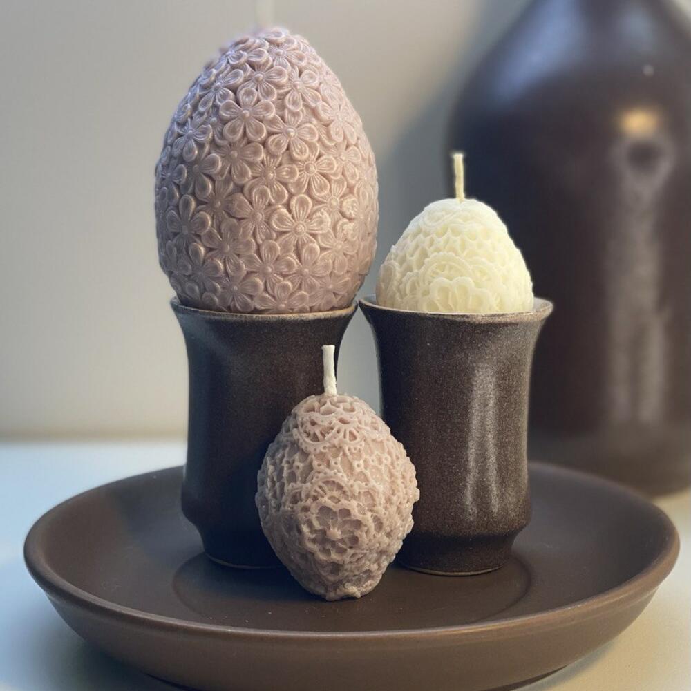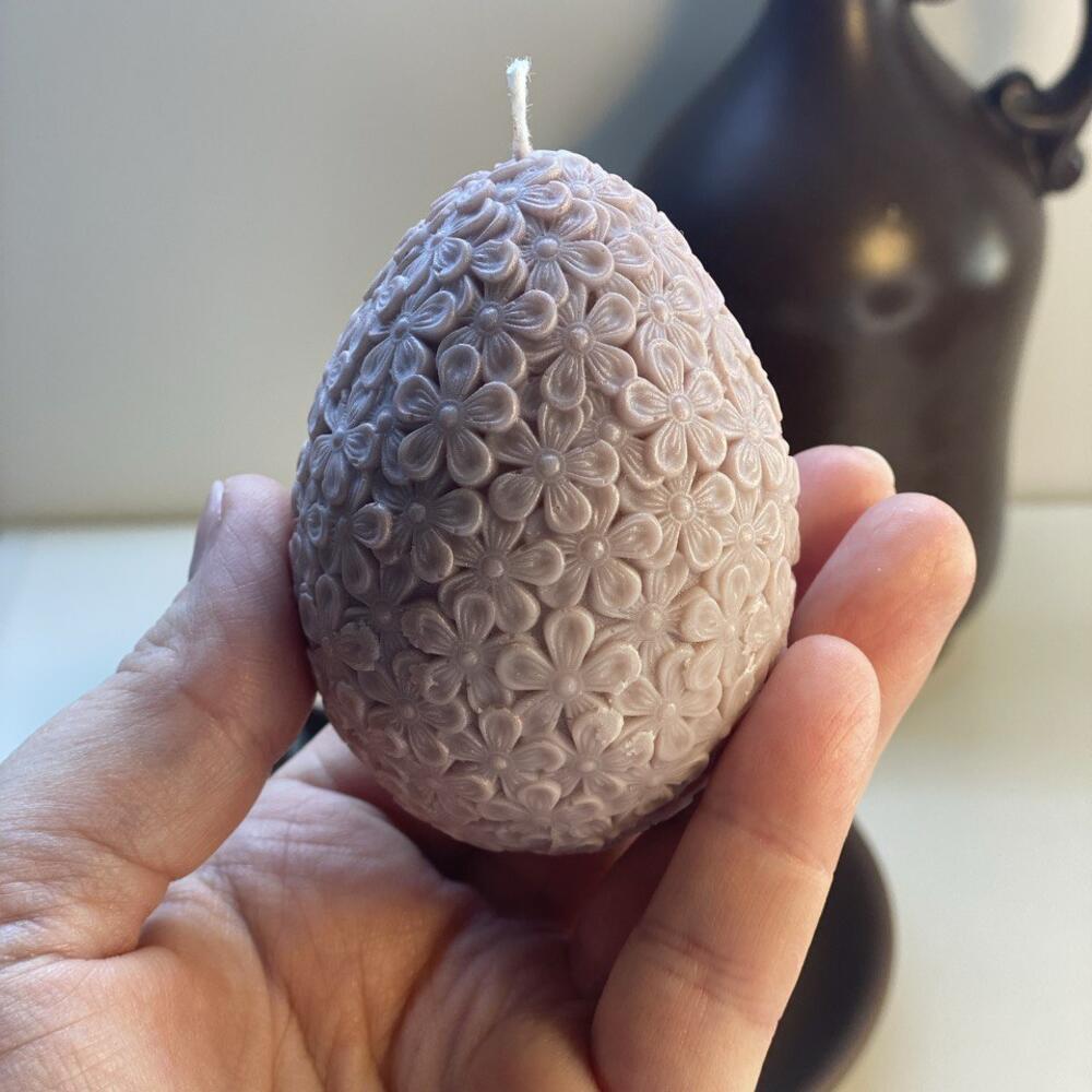 Интерьерная свеча Пасхальное яйцо Цветы капучино – дизайнерский подарок ручной работы - на Пасху, в День рождения, на именины, на корпоративное мероприятие. Интерьерные свечи будут уместны в качестве комплимента или благодарности. Принимаем корпоративные заказы. Сроки изготовления зависят от количества свечей и особенностей индивидуального дизайна. Скидка 10% при заказе от 5 шт. Интерьерная свеча Пасхальное яйцо Цветы капучино изготовлена вручную из соевого воска, имеет легкий кремовый аромат. Комплектация: - свеча-яйцо цвета капучино, высота 7 см, диаметр 5,5 см. Бонусом в комплекте - подарочная коробка-домик с праздничным декором, ручка-шнурок, пасхальная мини-открытка. Обращаем ваше внимание на эти важные моменты: - Категорически нельзя оставлять зажженную свечу без присмотра. Ставьте ее на невоспламеняющиеся поверхности подальше от сквозняков. И держите отдельно от детей. - Фитиль свечи должен быть не длиннее 0,5 - 1 см, обрежьте его до указанной длины, чтобы избежать дыма или высокого пламени. Подрезайте фитиль после каждого горения. - При первом зажигании протопите всю верхушку свечи для сохранения идеальной формы. - Не задувайте свечу, а накрывайте специальным колпаком или крышкой, чтобы не было запаха копоти.