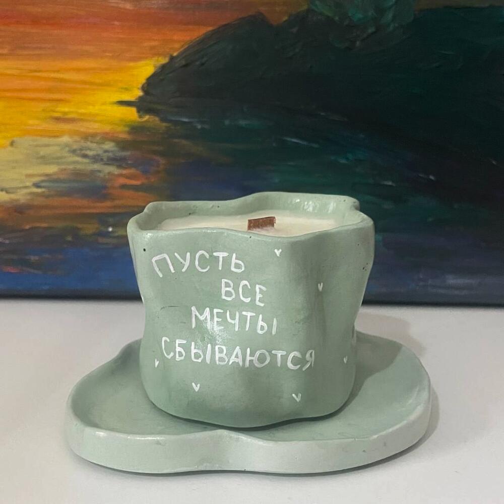 Сделаю под заказ свечу с действительно ярким ароматом. В комментарии к заказу укажите, какую надпись нанести и есть ли пожелания по ароматам и оформлению. В среднем, одна свеча изготавливается 5 дней. Если заказ срочный, укажите это при оформлении. Предложу подходящие варианты. Подставка под свечу — в подарок. На изделия приклеены демпферы, чтобы свеча стояла устойчиво на мебели. Изделия пролакированы, но протирать рекомендую сухой или совсем чуть-чуть влажной тряпочкой. Аромасвеча упаковывается в коробочку с наполнителем и открыткой. С любовью к уютным вечерам 🌿✨