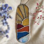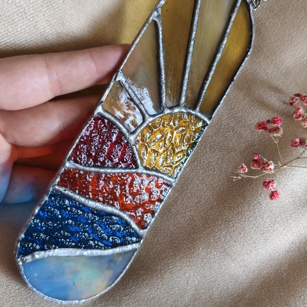 Витражная подвеска в технике Тиффани. Будет чудесно смотреться на окне, в солнечный день, пропуская лучи сквозь себя. Размер 6х19см + цепочка 15см.
