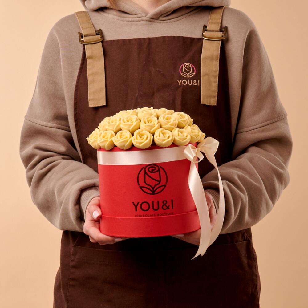 Шоколадные розы компании You&i выполнены из 100% Бельгийского шоколада. Шоколадный букет- это отличный способ порадовать подругу, девушку, жену, маму и бабушку. Шоколадные цветы- это отличная альтернатива живым цветам, а также оригинальный подарком, как на день рождения, так и на свадьбу. Также это отличная идея, если Вы ищете корпоративный подарок своим сотрудницам и даже сотрудникам! Подарочный набор из шоколада идеально подойдет, как коллегам, так и руководителю. На протяжении 5 лет мы помогаем Вам удивлять и радовать своих близких оригинальными и недорогими подарками. Тысячи наших покупателей уже оценили качество нашей продукции! У нас собственное производством и весь наш товар сертифицирован! Оттенок цветов в наличие может незначительно отличаться от представленных на фото.