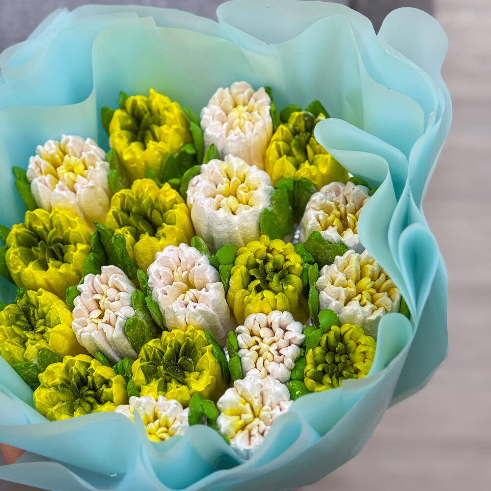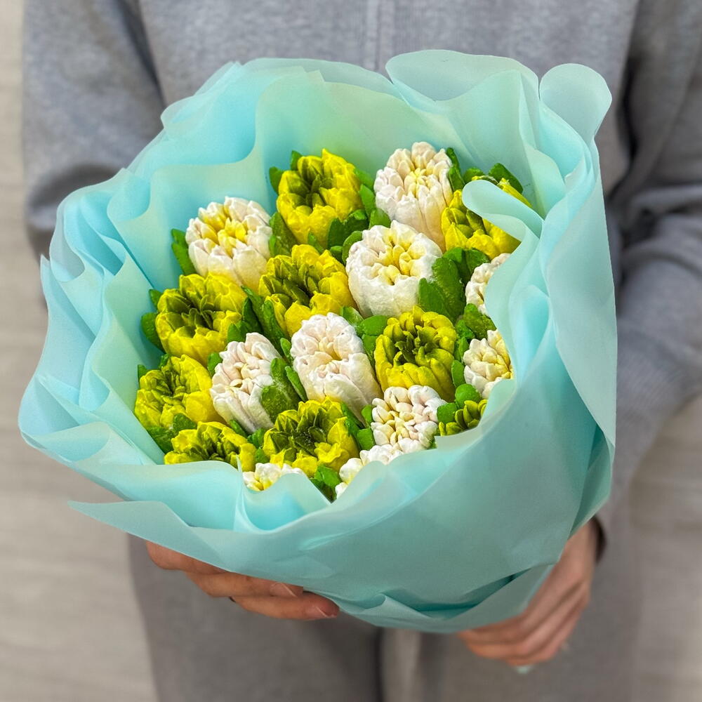 Милый воздушный букет для любимой на 14 февраля и День Влюбленных. ❤️ В составе цветы из зефира: белые со вкусом клюквы, жёлтые со вкусом манго 🥭 Состав: сок, агар-агар, яичный белок, сахар, фруктовое пюре, натуральный краситель, глюкоза, лимонная кислота.