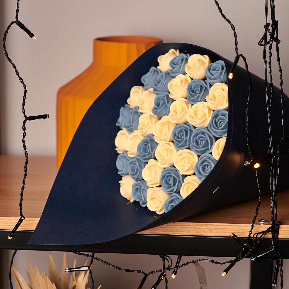 Шоколадные розы компании You&i выполнены из 100% Бельгийского шоколада. Шоколадный букет- это отличный способ порадовать подругу, девушку, жену, маму и бабушку. Шоколадные цветы- это отличная альтернатива живым цветам, а также оригинальный подарком, как на день рождения, так и на свадьбу. Компания You&i располагает собственным производством и весь товар сертифицирован! Оттенок цветов в наличие может незначительно отличаться от представленных на фото. Букет убирать в холодильник не нужно! Букет необходимо хранить при комнатной температуре. Букет не рекомендуется держать вблизи нагревательных приборов и под длительным воздействием солнечных лучей. Для защиты от внешних воздействий букеты дополнительно упакованы в прозрачную плёнку и фирменный пакет.
