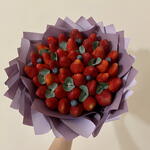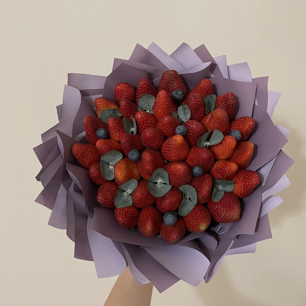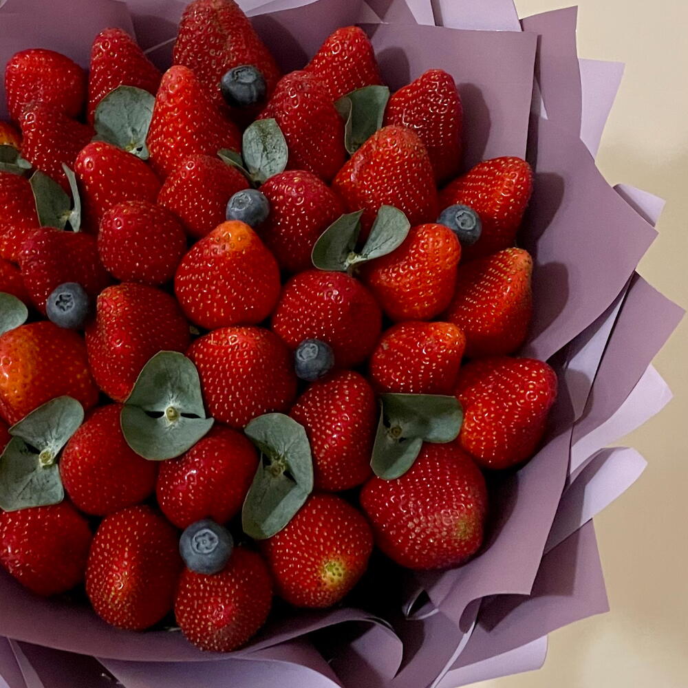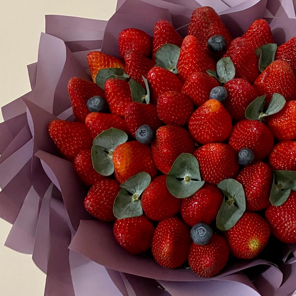 Сверху букет будет упакован в прозрачную плёнку, что обеспечит гигиеничность его перевозки. Перед едой нужно помыть составляющие! Все букеты собираются в день выдачи. Транспортировка букета возможна на сидении автомобиля , пристегнув ремнем безопасности, или поставив на пол зафиксировав между сидениями. Хранить в прохладном помещении (балкон/холодильник) от 1 до 3 дней.