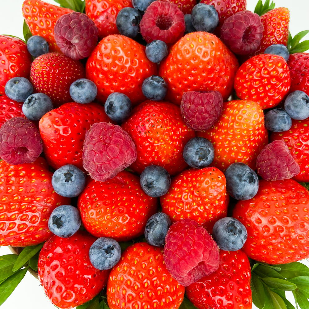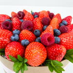 Клубника - 500 гр. Самшит - 1 шт. Коробка - 1 шт. Малина - 30 гр. Голубика - 30 гр.