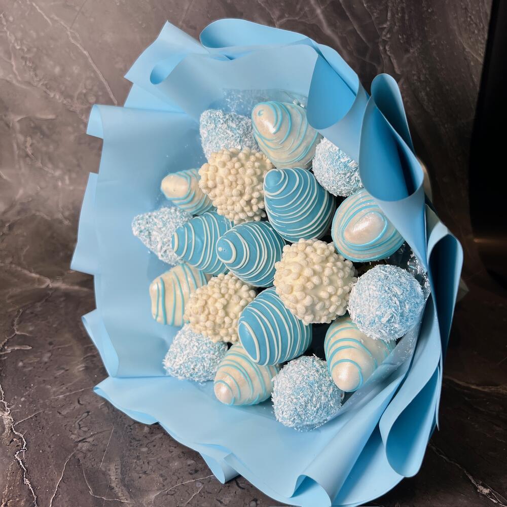 Букет из клубники в шоколаде голубой