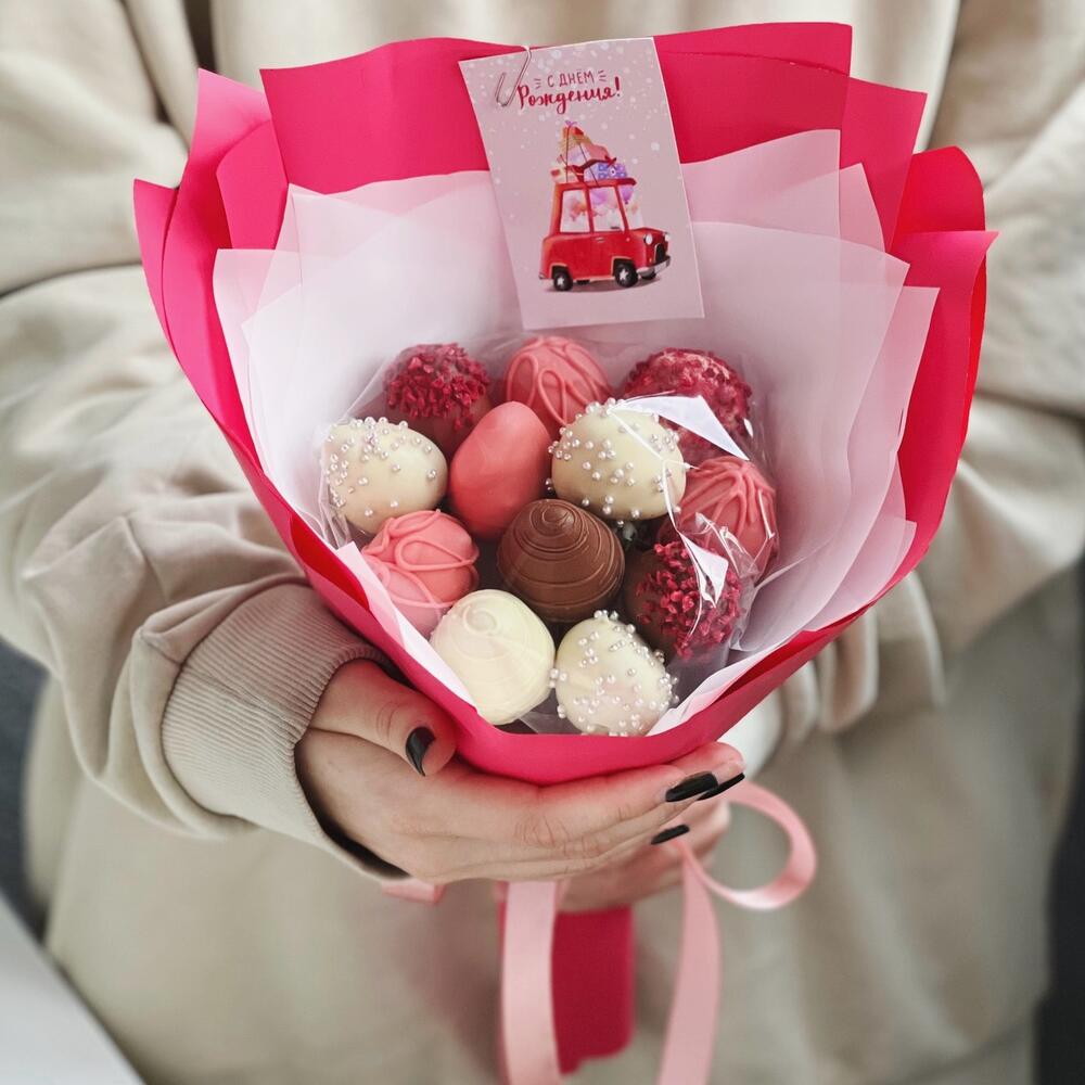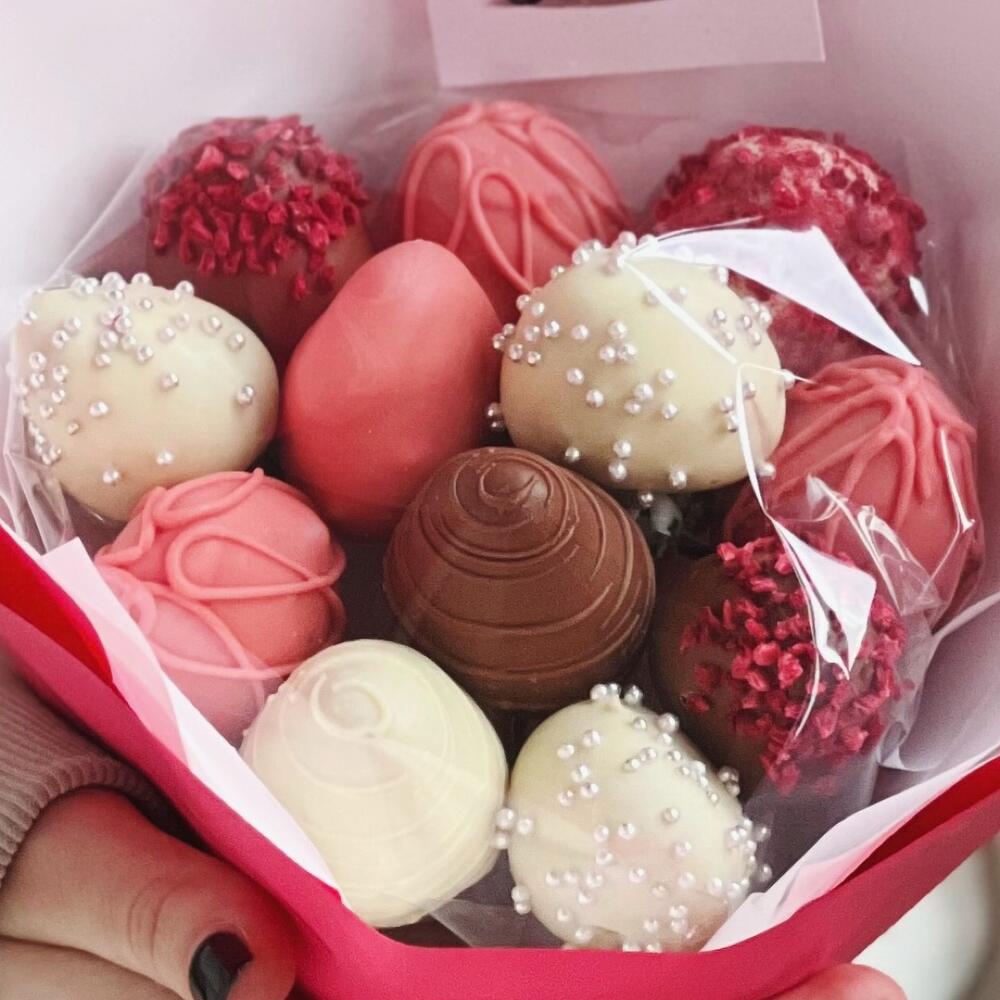 Клубника в шоколаде - 12 шт. сублимированная малина - 10 гр. серебристые шарики - 10 гр.