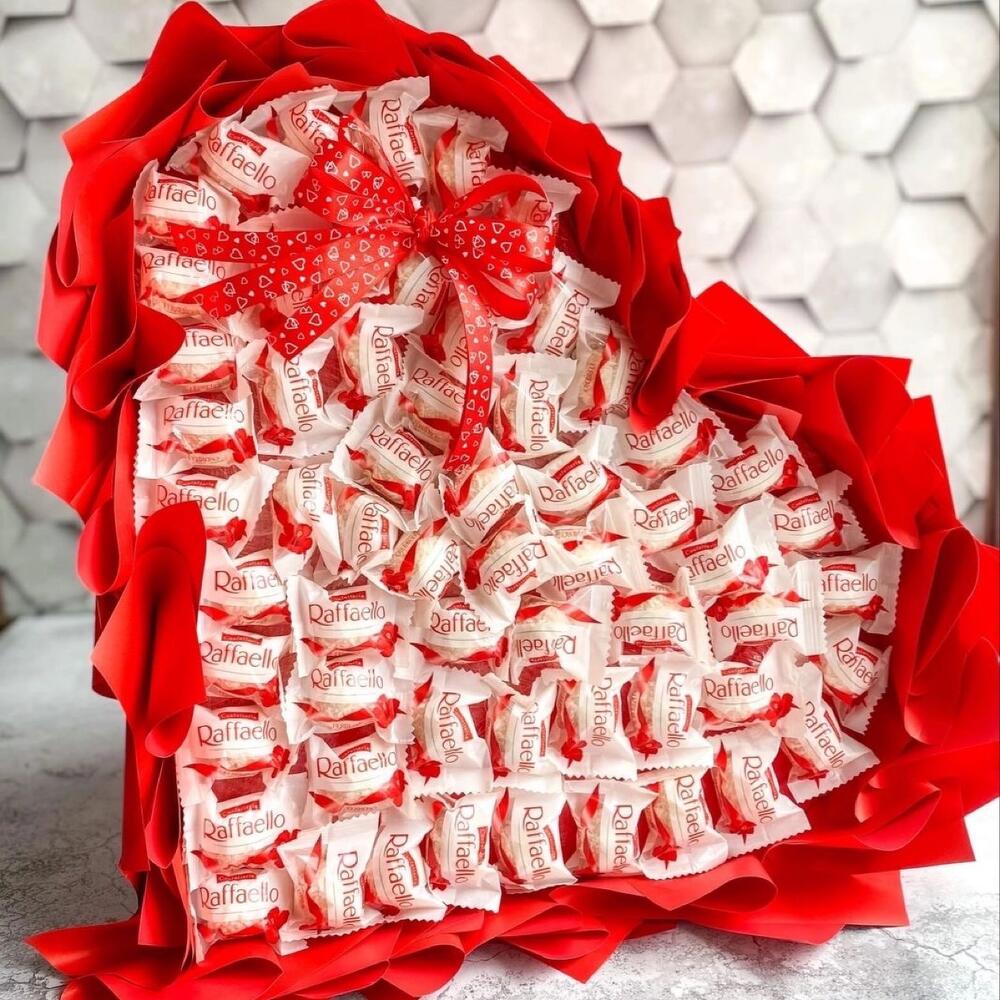 Букет из Raffaello сердце в красной упаковке, станет прекрасным подарком для Неё. Выражай свои чувства ярко❤️