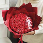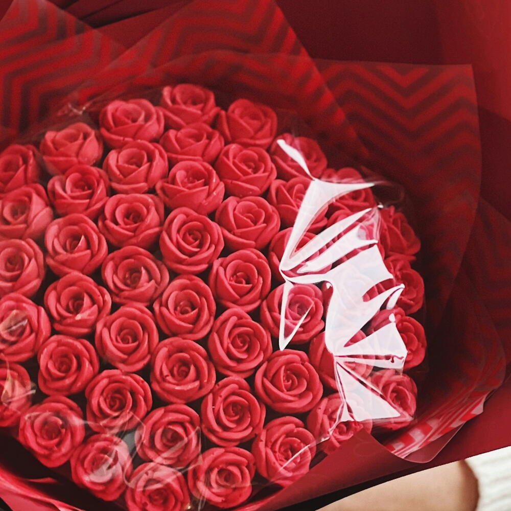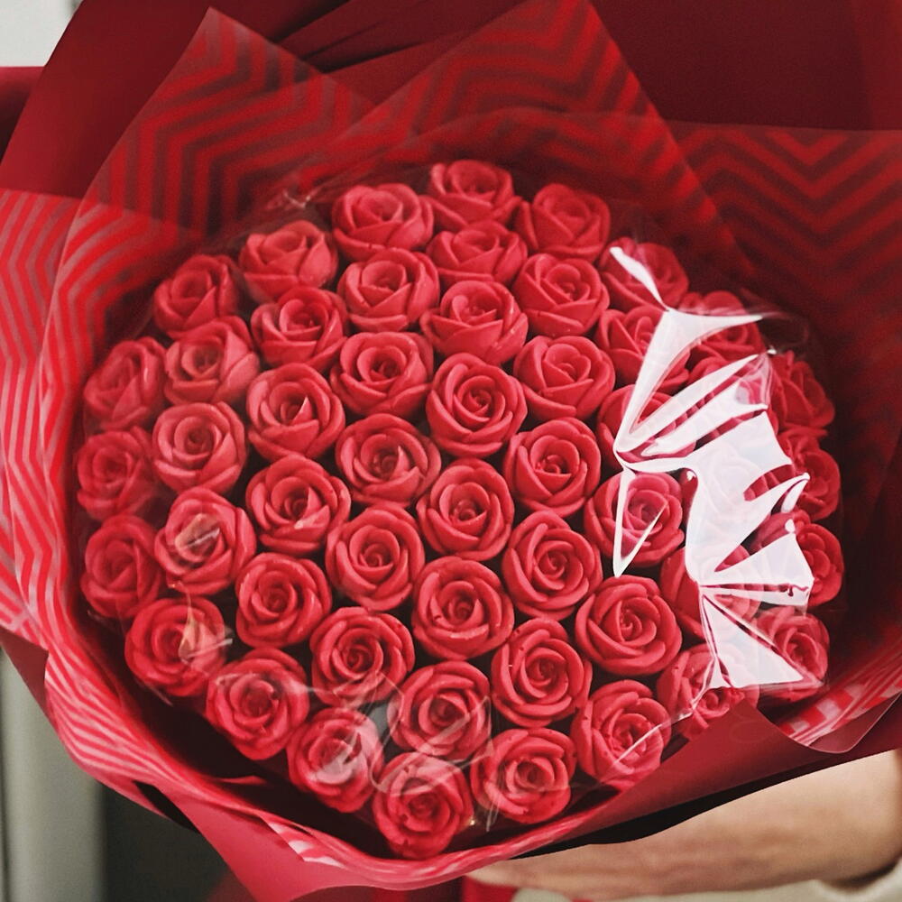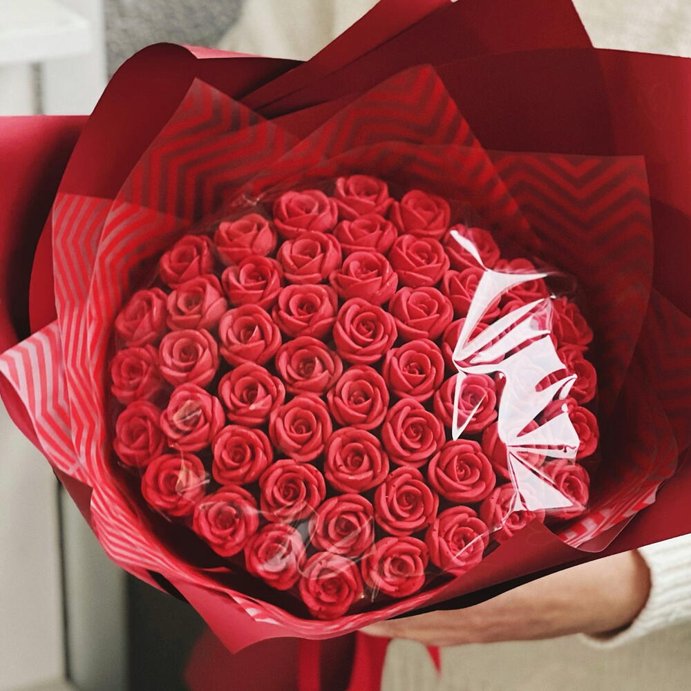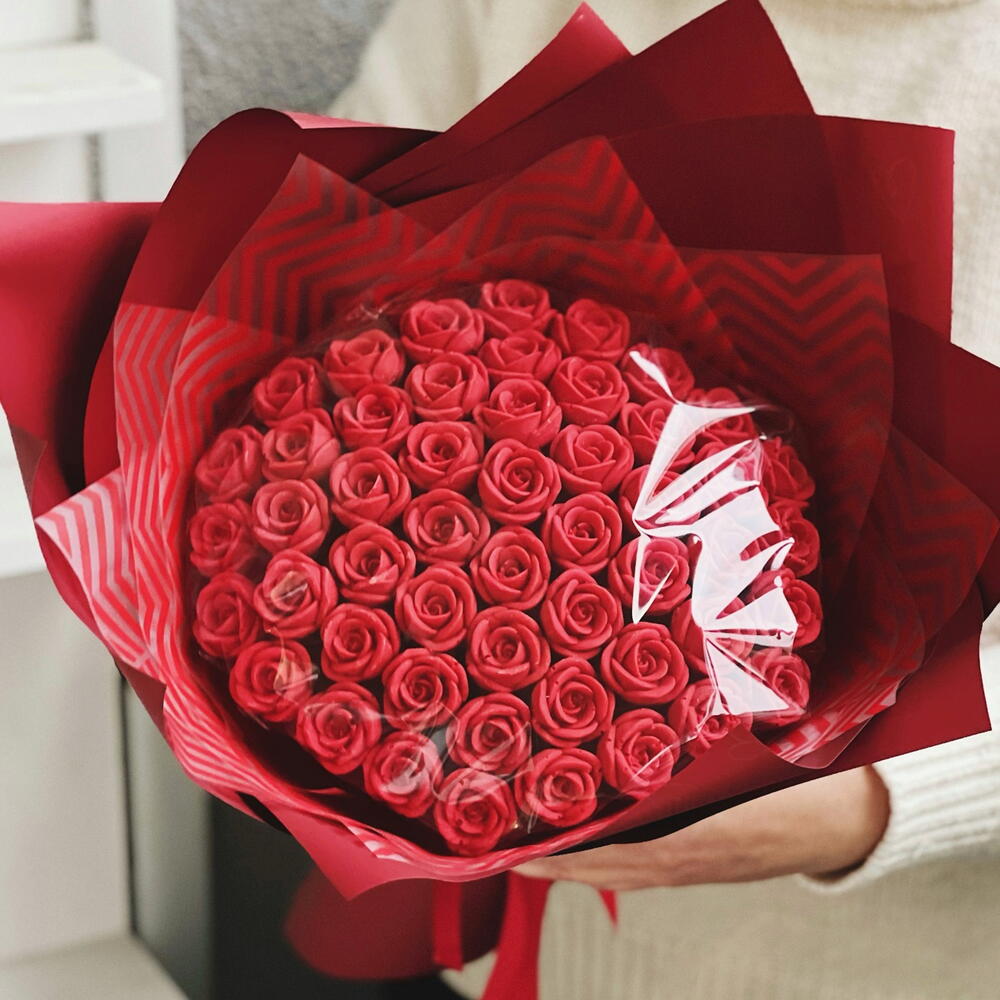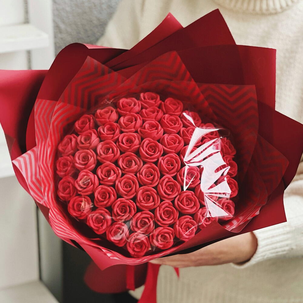 Шикарный букет из 51 красной шоколадной розы.❤️ Розы изготовлены из белого бельгийского шоколада. Вес одной розочки - 10-12гр, диаметр - 3 см. Идеальный вариант для того, чтобы признаться в своих чувствах, а также поздравить с днём рождения или юбилеем.❤️ Срок хранения - 60 суток, хранить при комнатной температуре, вдали от солнечных лучей.