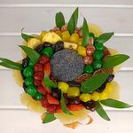 Ананас - 80 гр. Мандарин - 80 гр. Лайм - 80 гр. Лимон - 80 гр. Крем-мед - 1 шт. Курага - 80 гр. Чернослив - 80 гр. Финики - 80 гр. декоративная зелень - 1 шт. кизил - 80 гр. груша армянская - 80 гр.