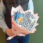 Лента атласная - 1 шт. Жвачки love is - 75 шт. Шпажки деревянные - 10 шт. бумага дизайнерская - 1 шт. скотч - 1 шт. пеноплекс - 1 шт. работа нежных рук флориста(бесплатно и с любовью) - 1 шт.