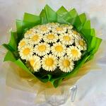 Букеты из ромашек из бельгийского шоколада. Ромашки изготовлены из премиального бельгийского шоколада со вкусом мороженого, очень вкусные! Милый букет для мамы, любимой девушки, жены, на юбилей, на свадьбу. Диаметр букета без упаковки около 20 см, с упаковкой примерно 25 см. Хранить при температуре 15-22 градуса не более 5 месяцев. На дальние расстояния в жару перевозить на машине с кондиционером. Дома в холодильник ставить не нужно. хранить вдали от солнечных лучей, в жару так же желательно в комнате с кондиционером. Состав белого шоколада: Сахар; масло какао; сухое цельное молоко; эмульгатор: соевый лецитин; натуральный ароматизатор: ваниль. Серединки цветов окрашены желтой пищевой цветочной пыльцой.