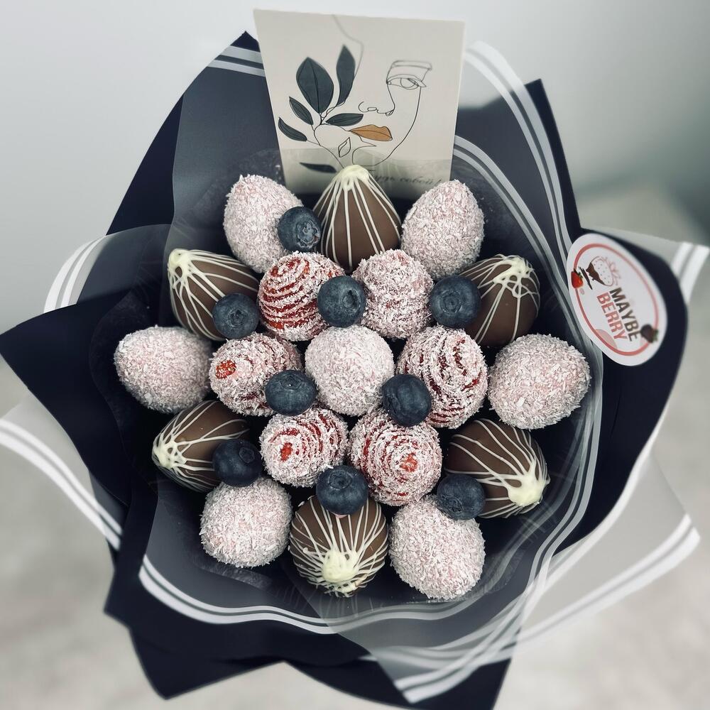 Голубика - 9 шт. Бельгийский шоколад - 1 шт. Клубника в шоколаде - 19 шт.
