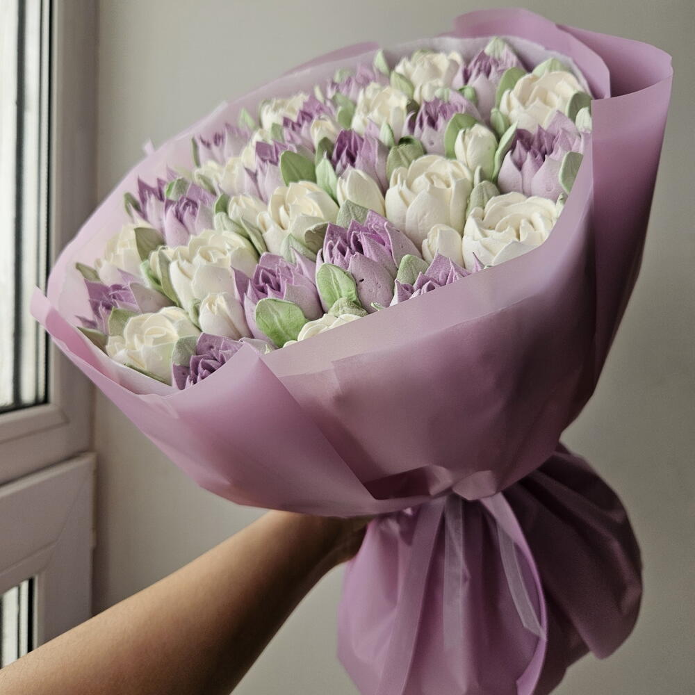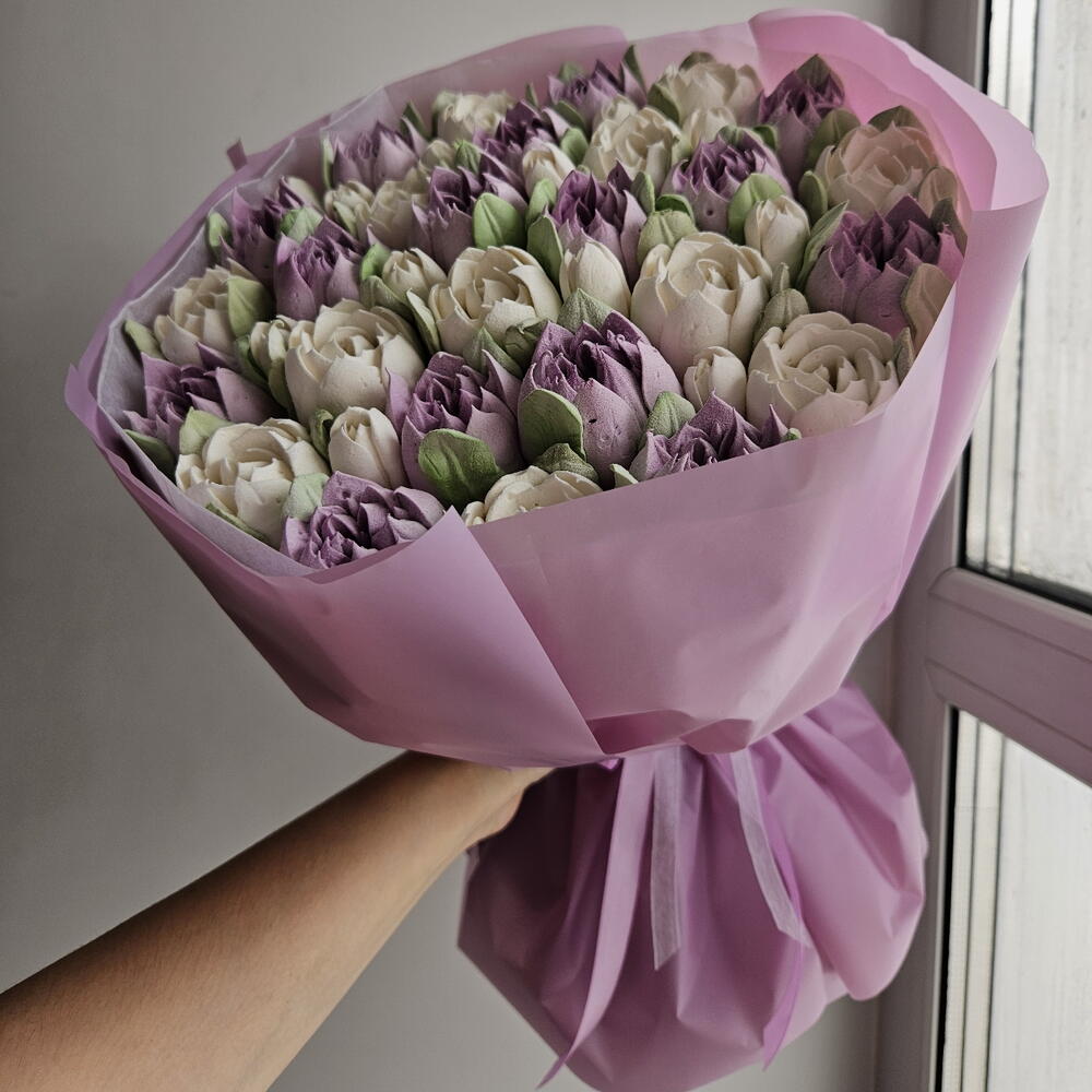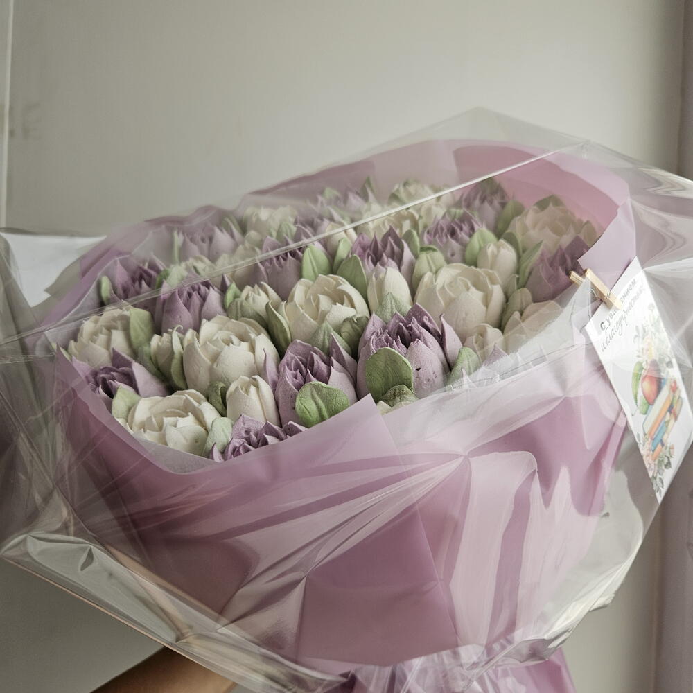 Забудьте всё, что вы знали о магазинном зефире! Наши тюльпаны – это 100% ручная работа из домашнего зефира, созданного специально для вас. ✨ Неповторимый Вкус и Текстура: Тает во рту: Нежная, воздушная текстура, не похожая ни на что, что вы пробовали раньше. Идеальный баланс сладости: в меру сладкий яблочный вкус. Только свежее: Мы готовим каждую партию зефирных тюльпанов только после вашего заказа, чтобы вы получили самый свежий, легкий и воздушный десерт. На открытом воздухе зефир со временем покрывается тонкой сахарной корочкой, постепенно напоминая безе – это естественный процесс, подчеркивающий его натуральность. 🎁 Подарок, Который Запомнится: Эти невероятно вкусные, красивые и ароматные зефирные цветы станут незабываемым подарком. Каждая коробочка или букет собирается вручную с душой и вниманием к деталям! Что входит в ваш заказ: 1. Изящный букет зефирных тюльпанов ручной работы. 2. Нарядная атласная лента, добавляющая шарма. 3. Милая открытка (дизайн из наличия на момент вашего заказа). 4. Удобный пакет для транспортировки вашего сладкого подарка. Важная информация: Цвет: Обращаем ваше внимание, что оттенок цветов на экране вашего устройства и вживую может незначительно отличаться из-за индивидуальных настроек цветопередачи. Персонализация (по возможности): Цвет ленты, оттенок упаковки и вид открытки могут или оговариваться индивидуально. Мы всегда стремимся, чтобы ваши ожидания совпали с реальностью! 🌿 Условия Хранения для Максимальной Свежести: Срок годности: До 14 суток в герметичной упаковке. Температура: Хранить при температуре от +2 до +25°C. Место: В герметичной коробке или контейнере, вдали от прямых солнечных лучей и источников тепла. 💖 Идеально для Любого Повода: Свадьба, день рождения, юбилей, 8 Марта, День Учителя, или просто чтобы сделать приятный сюрприз любимой маме, бабушке, подруге, девушке, коллеге – наши зефирные тюльпаны подарят улыбку и восторг! 🌟 «ЗЕФИРНИК» – Ваш Эксперт по Зефирным Цветам! Мы с гордостью изготовили уже более 20 000 тюльпанов и заслужили рейтинг 5 звезд на других площадках. Теперь наше нежное мастерство доступно и на Flowwow! Закажите сейчас и подарите незабываемые эмоции!