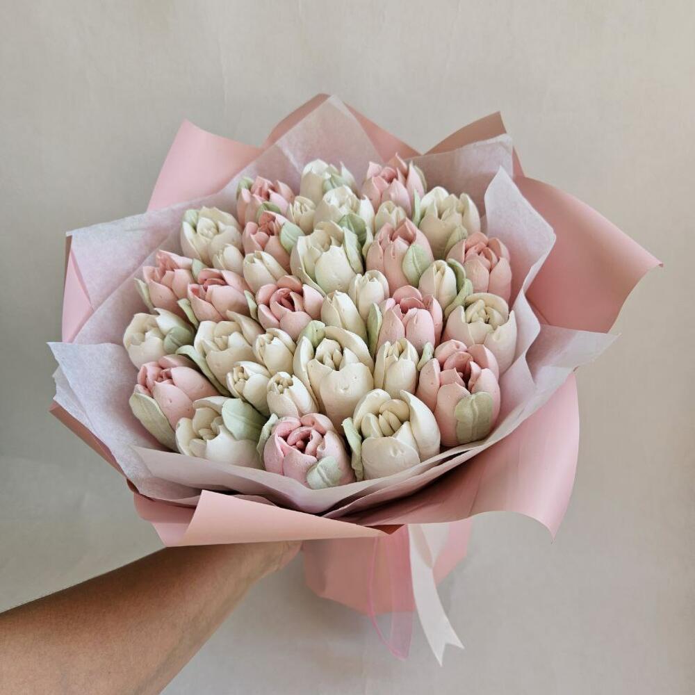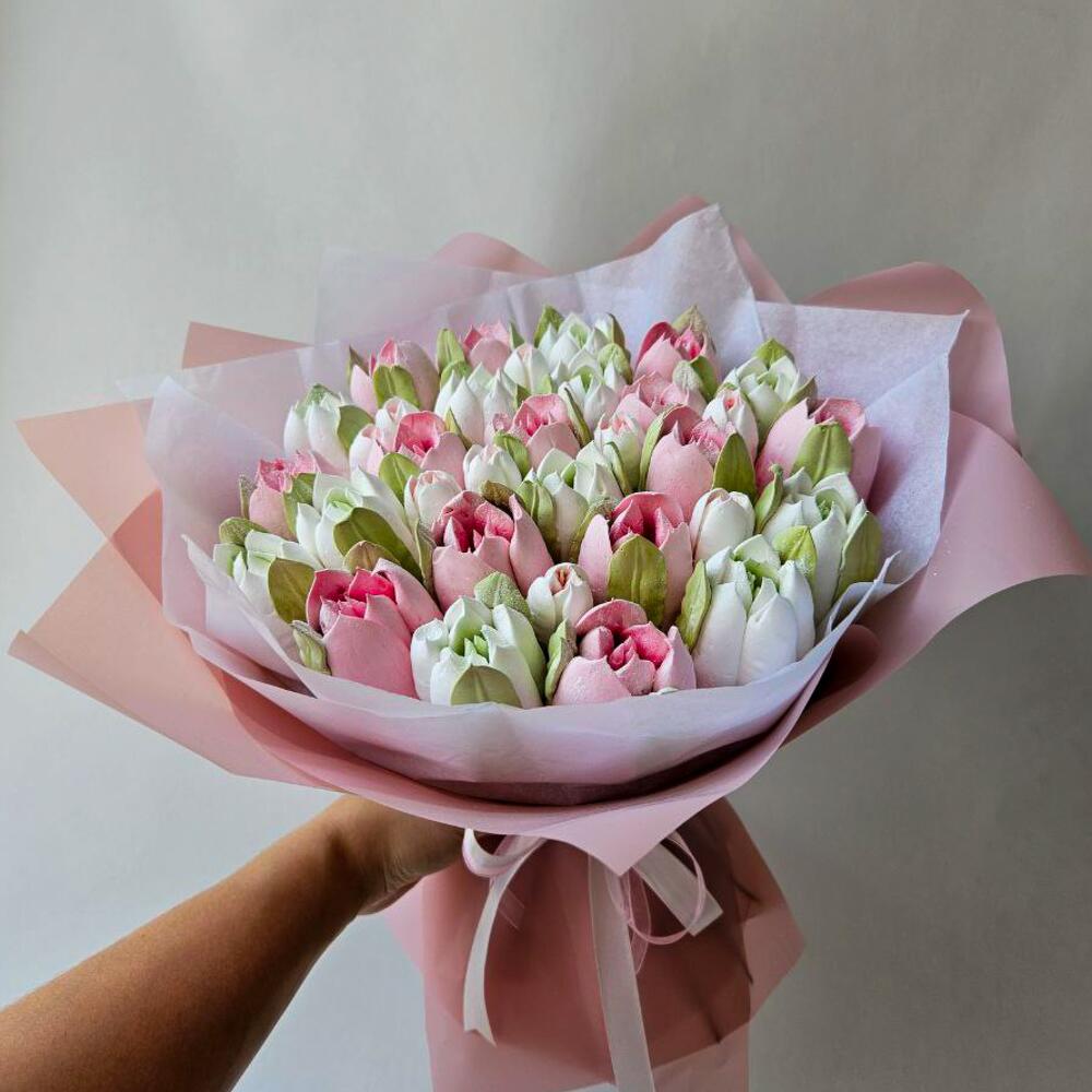 Забудьте всё, что вы знали о магазинном зефире! Наши тюльпаны – это 100% ручная работа из домашнего зефира, созданного специально для вас. ✨ Неповторимый Вкус и Текстура: Тает во рту: Нежная, воздушная текстура, не похожая ни на что, что вы пробовали раньше. Идеальный баланс сладости: в меру сладкий яблочный вкус. Только свежее: Мы готовим каждую партию зефирных тюльпанов только после вашего заказа, чтобы вы получили самый свежий, легкий и воздушный десерт. На открытом воздухе зефир со временем покрывается тонкой сахарной корочкой, постепенно напоминая безе – это естественный процесс, подчеркивающий его натуральность. 🎁 Подарок, Который Запомнится: Эти невероятно вкусные, красивые и ароматные зефирные цветы станут незабываемым подарком. Каждая коробочка или букет собирается вручную с душой и вниманием к деталям! Что входит в ваш заказ: 1. Изящный букет зефирных тюльпанами ручной работы. 2. Нарядная атласная лента, добавляющая шарма. 3. Милая открытка (дизайн из наличия на момент вашего заказа). 4. Удобный пакет для транспортировки вашего сладкого подарка. Важная информация: Цвет: Обращаем ваше внимание, что оттенок цветов на экране вашего устройства и вживую может незначительно отличаться из-за индивидуальных настроек цветопередачи. Персонализация (по возможности): Цвет ленты, оттенок упаковки и вид открытки могут или оговариваться индивидуально. Мы всегда стремимся, чтобы ваши ожидания совпали с реальностью! 🌿 Условия Хранения для Максимальной Свежести: Срок годности: До 14 суток в герметичной упаковке. Температура: Хранить при температуре от +2 до +25°C. Место: В герметичной коробке или контейнере, вдали от прямых солнечных лучей и источников тепла. 💖 Идеально для Любого Повода: Свадьба, день рождения, юбилей, 8 Марта, День Учителя, или просто чтобы сделать приятный сюрприз любимой маме, бабушке, подруге, девушке, коллеге – наши зефирные тюльпаны подарят улыбку и восторг! 🌟 «ЗЕФИРНИК» – Ваш Эксперт по Зефирным Цветам! Мы с гордостью изготовили уже более 20 000 тюльпанов и заслужили рейтинг 5 звезд на других площадках. Теперь наше нежное мастерство доступно и на Flowwow! Закажите сейчас и подарите незабываемые эмоции!