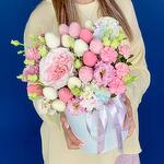 Эустома - 1 шт. Фисташка - 5 шт. Лента атлас - 2 шт. Диантус кустовой - 2 шт. Бархатная коробка - 1 шт. Оазис флористический - 1 шт. Клубника в шоколаде - 15 шт. диантус радужный - 2 шт. японская пионовидная роза - 1 шт.
