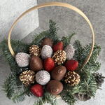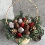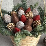 Нобилис - 1 шт. клубника свежая - 4 шт. клубника в шоколаде молочном - 4 шт. корзинка плетеная - 1 шт. клубника в шоколаде молочном с посыпкой кокосовая стружка - 4 шт. клубника в шоколаде молочном с посыпкой орех фундук дробленый - 4 шт.