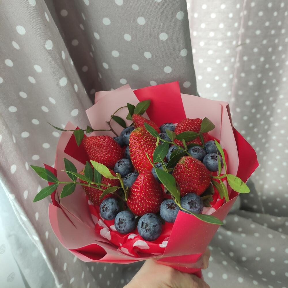 клубника свежая - 7 шт. голубика свежая - 15 шт. сухоцвет эвкалипт - 3 шт.