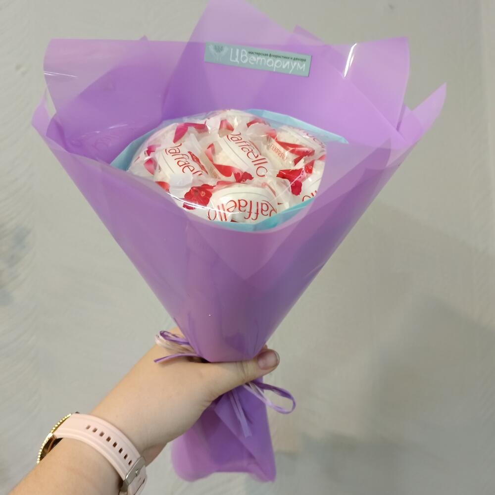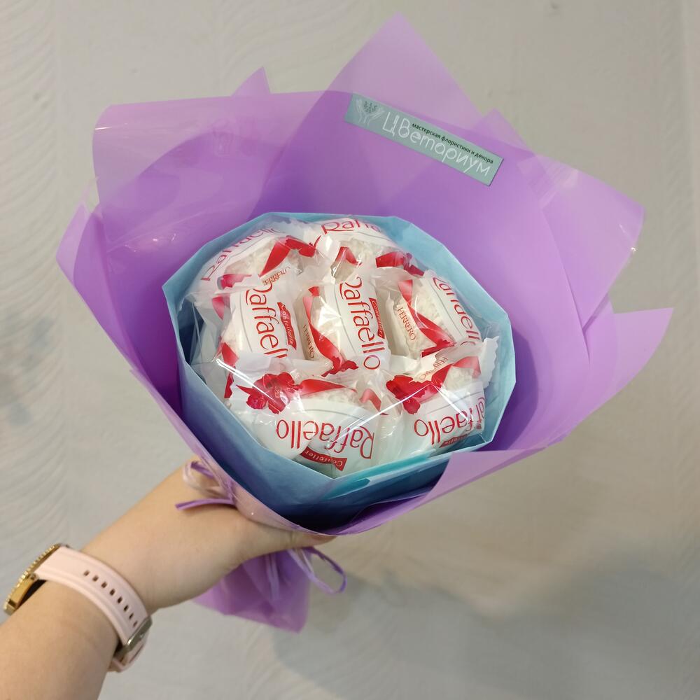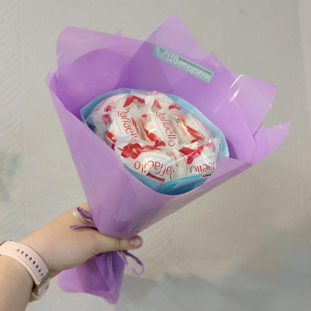 Мини-букет из конфет Rafaello сиреневый