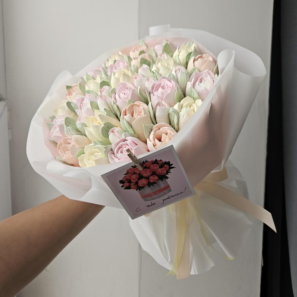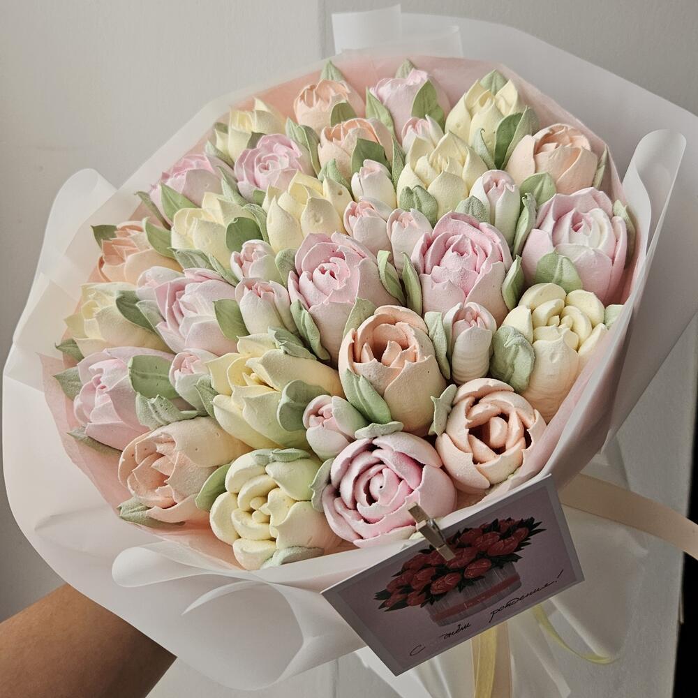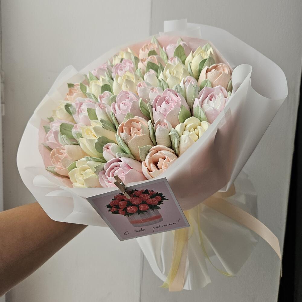Нежный букет зефирных тюльпанов