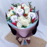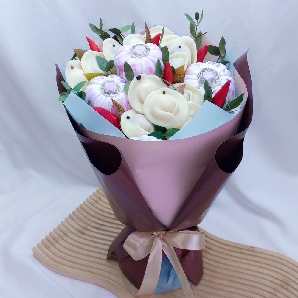 Уникальное сочетание для мужчин сладкоежек😉 Оригинальный букет из шоколадных пельменей, который станет настоящим украшением любого стола! Пирожное Картошка в виде чесночка, добавит игривости в букет! Такой букет подарит незабываемые эмоции дарителю и удивит гостей! Идеально для праздников или просто для поднятия настроения🎉 ! В рамках данной цены возможно изменение цвета упаковки! Также зелень может незначительно отличаться (зависит от наличия). 100% совпадения с внешним видом невозможна!