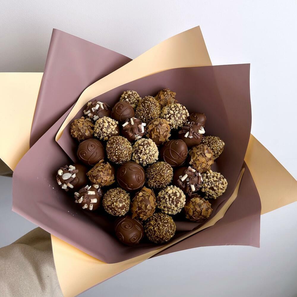 Шоколадный букет из клубники в шоколаде в размере M (30-32 ягоды)