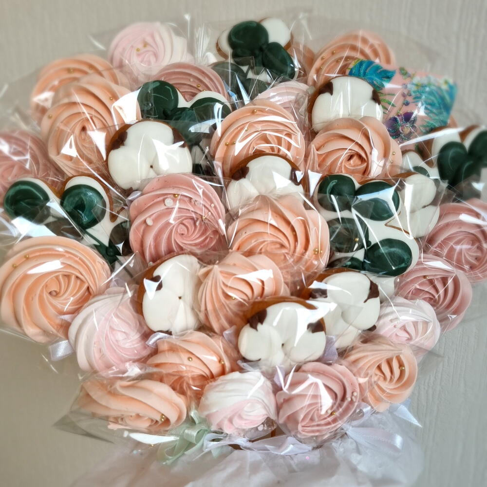 безе ручной работы - 23 шт. имбирный пряник ручной работы - роспись лист эвкалипта - 5 шт. имбирный пряник ручной работы - роспись цветок хлопка - 7 шт.