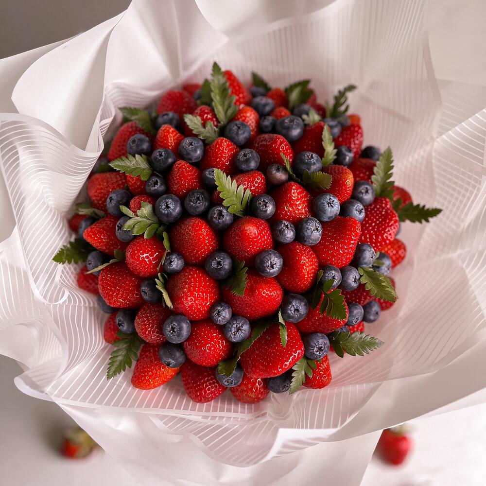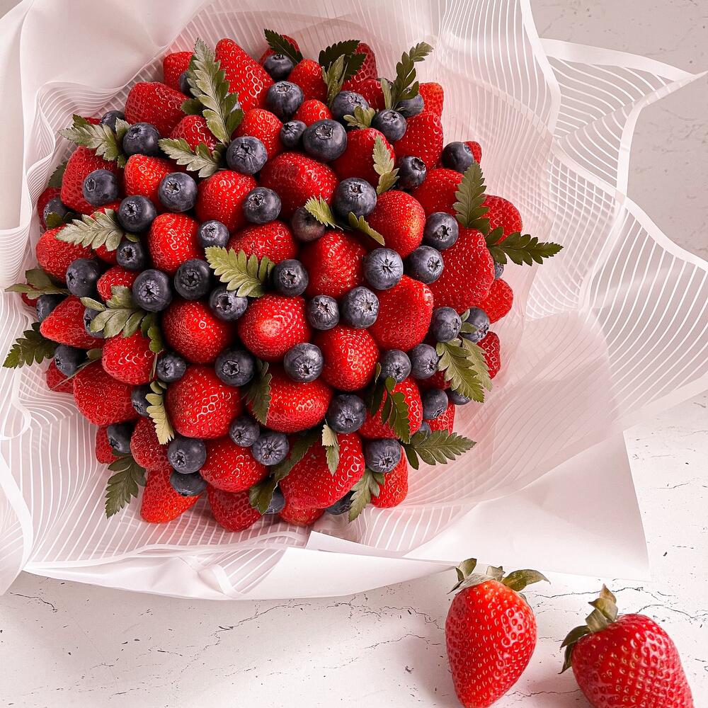 Клубника - 1000 гр. Папоротник - 1 шт. Голубика - 125 гр.