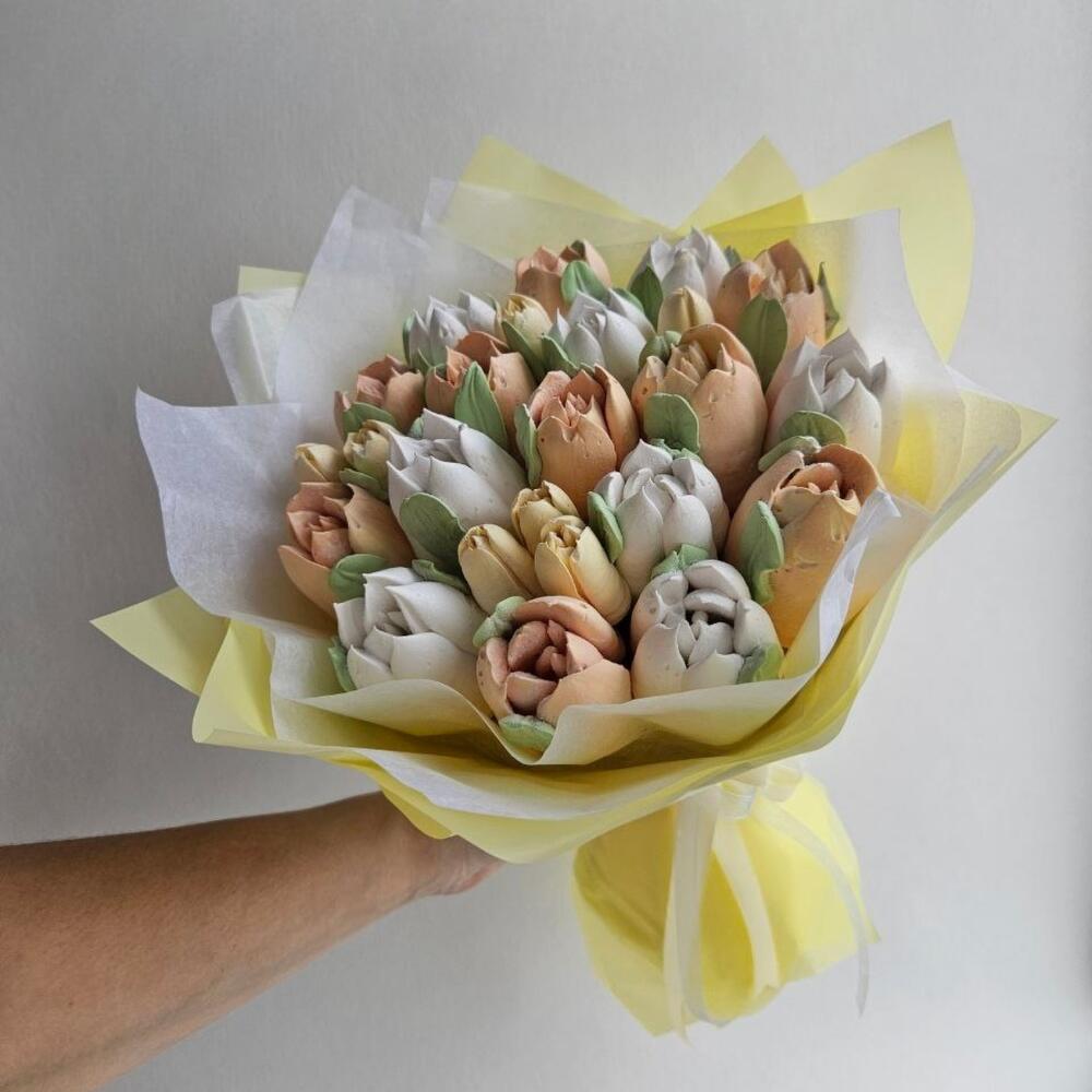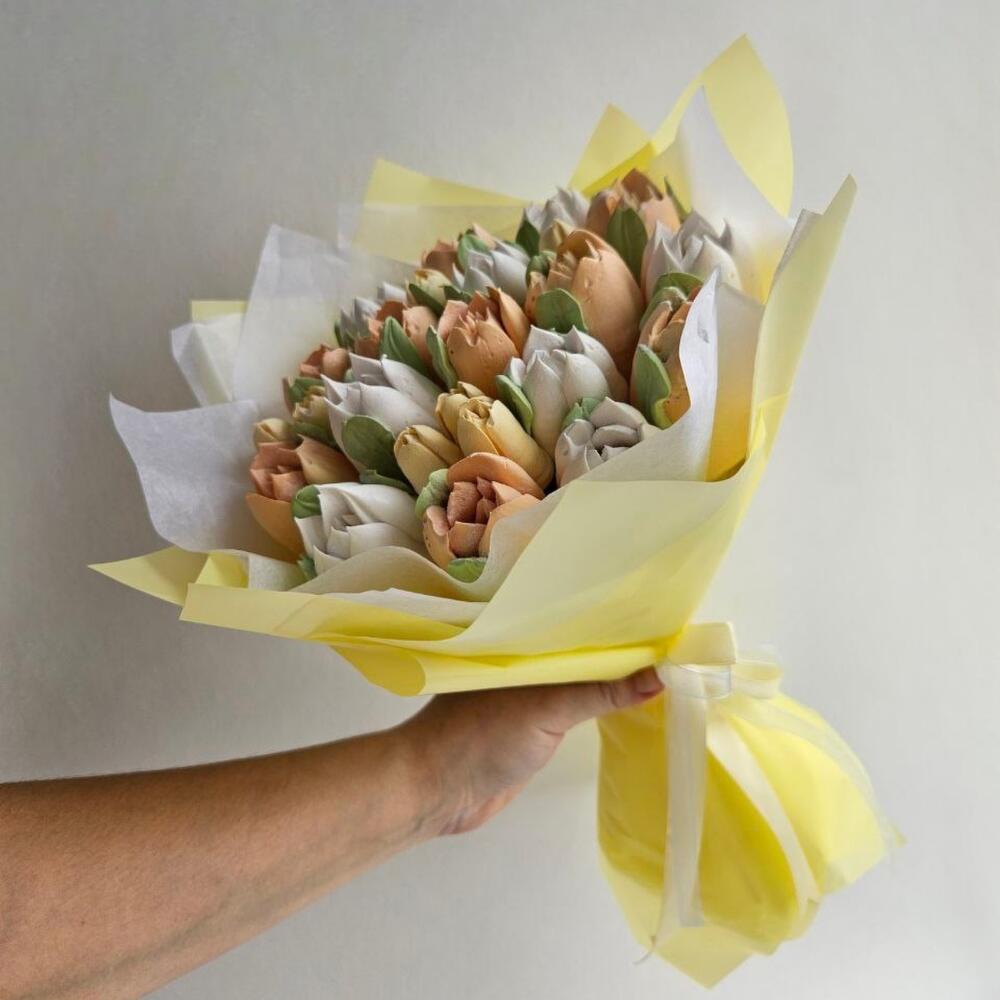 Забудьте всё, что вы знали о магазинном зефире! Наши тюльпаны – это 100% ручная работа из домашнего зефира, созданного специально для вас. ✨ Неповторимый Вкус и Текстура: Тает во рту: Нежная, воздушная текстура, не похожая ни на что, что вы пробовали раньше. Идеальный баланс сладости: в меру сладкий яблочный вкус. Только свежее: Мы готовим каждую партию зефирных тюльпанов только после вашего заказа, чтобы вы получили самый свежий, легкий и воздушный десерт. На открытом воздухе зефир со временем покрывается тонкой сахарной корочкой, постепенно напоминая безе – это естественный процесс, подчеркивающий его натуральность. 🎁 Подарок, Который Запомнится: Эти невероятно вкусные, красивые и ароматные зефирные цветы станут незабываемым подарком. Каждая коробочка или букет собирается вручную с душой и вниманием к деталям! Что входит в ваш заказ: 1. Изящный букет зефирных тюльпанов ручной работы. 2. Нарядная атласная лента, добавляющая шарма. 3. Милая открытка (дизайн из наличия на момент вашего заказа). 4. Удобный пакет для транспортировки вашего сладкого подарка. Важная информация: Цвет: Обращаем ваше внимание, что оттенок цветов на экране вашего устройства и вживую может незначительно отличаться из-за индивидуальных настроек цветопередачи. Персонализация (по возможности): Цвет ленты, оттенок упаковки и вид открытки могут или оговариваться индивидуально. Мы всегда стремимся, чтобы ваши ожидания совпали с реальностью! 🌿 Условия Хранения для Максимальной Свежести: Срок годности: До 14 суток в герметичной упаковке. Температура: Хранить при температуре от +2 до +25°C. Место: В герметичной коробке или контейнере, вдали от прямых солнечных лучей и источников тепла. 💖 Идеально для Любого Повода: Свадьба, день рождения, юбилей, 8 Марта, День Учителя, или просто чтобы сделать приятный сюрприз любимой маме, бабушке, подруге, девушке, коллеге – наши зефирные тюльпаны подарят улыбку и восторг! 🌟 «ЗЕФИРНИК» – Ваш Эксперт по Зефирным Цветам! Мы с гордостью изготовили уже более 20 000 тюльпанов и заслужили рейтинг 5 звезд на других площадках. Теперь наше нежное мастерство доступно и на Flowwow! Закажите сейчас и подарите незабываемые эмоции!